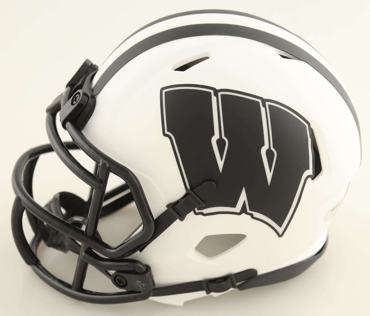 Riddell Wisconsin Badgers Lunar Eclipse Alternate Speed mini helmet. Hand-signed and inscribed by Ron Dayne.