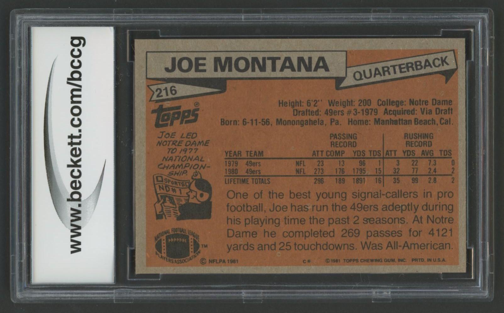 Joe Montana 1981 Topps #216 RC (BCCG 9)