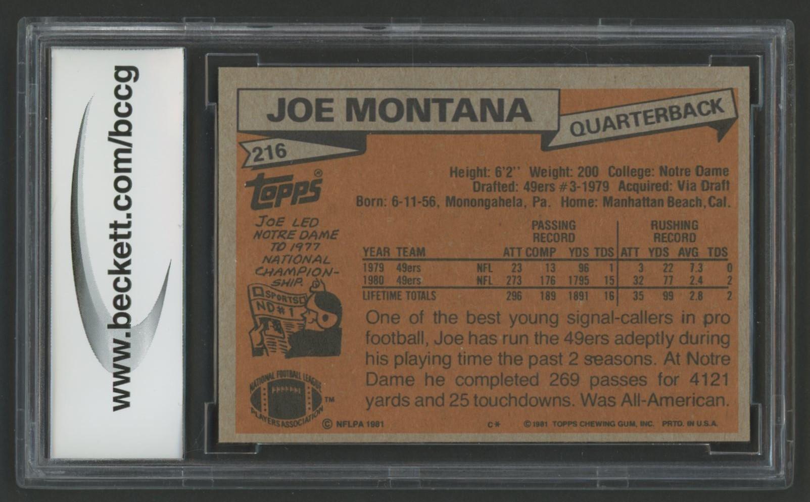 Joe Montana 1981 Topps #216 RC (BCCG 9)