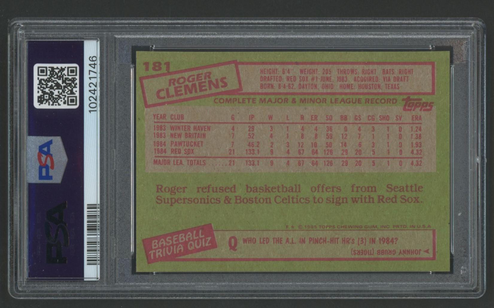 Roger Clemens 1985 Topps #181 RC (PSA 9)
