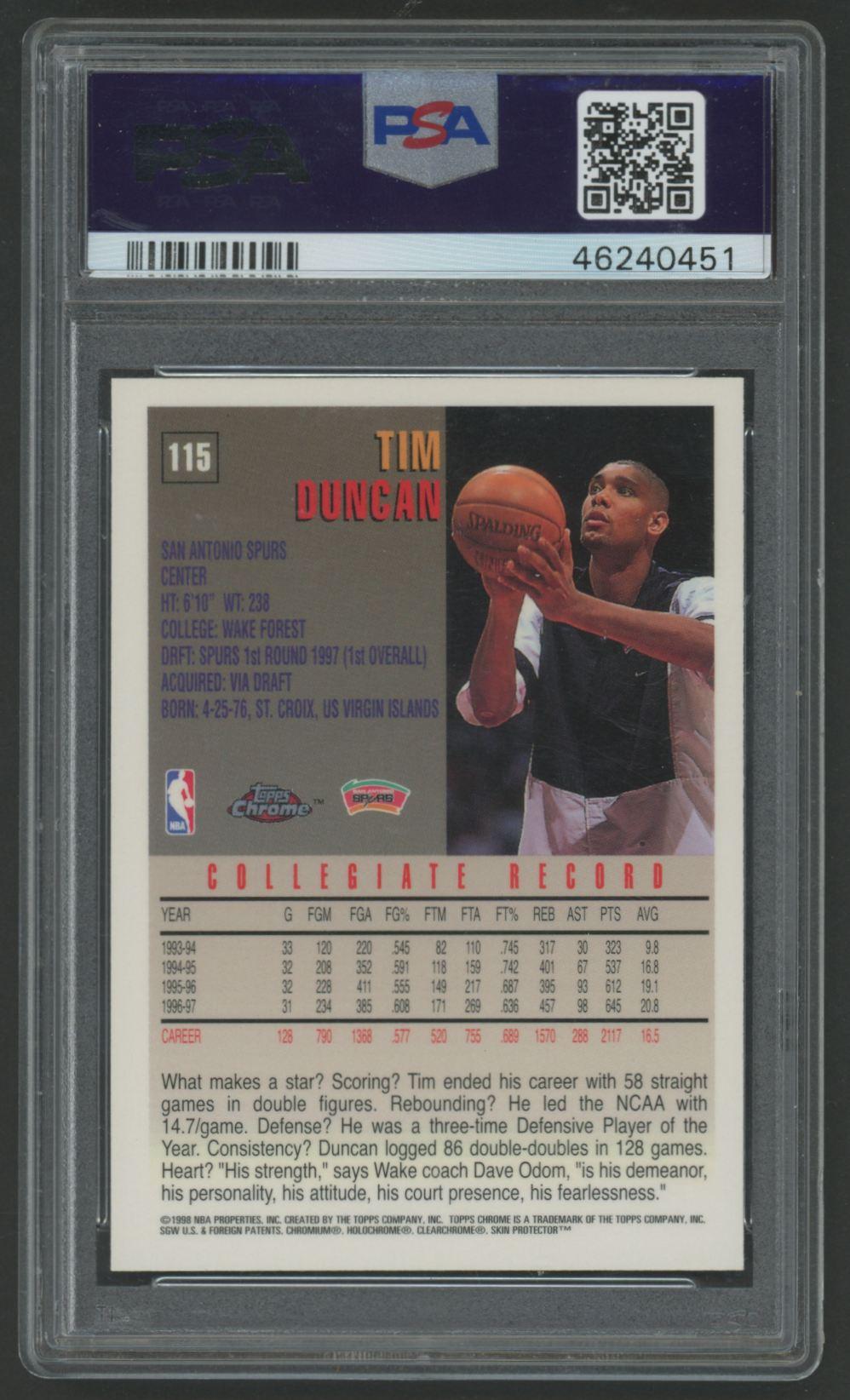 Tim Duncan 1997-98 Topps Chrome #115 RC (PSA 9)