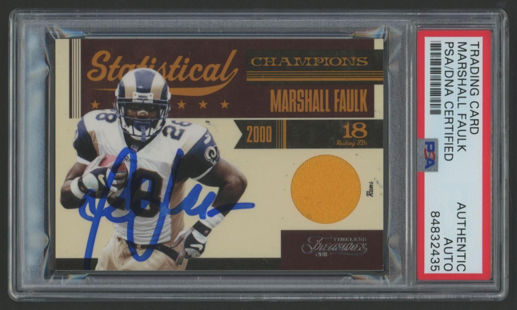 Marshall Faulk Signed 2011 Timeless Treasures Statistical Champions Materials #9 #31/100 (PSA)