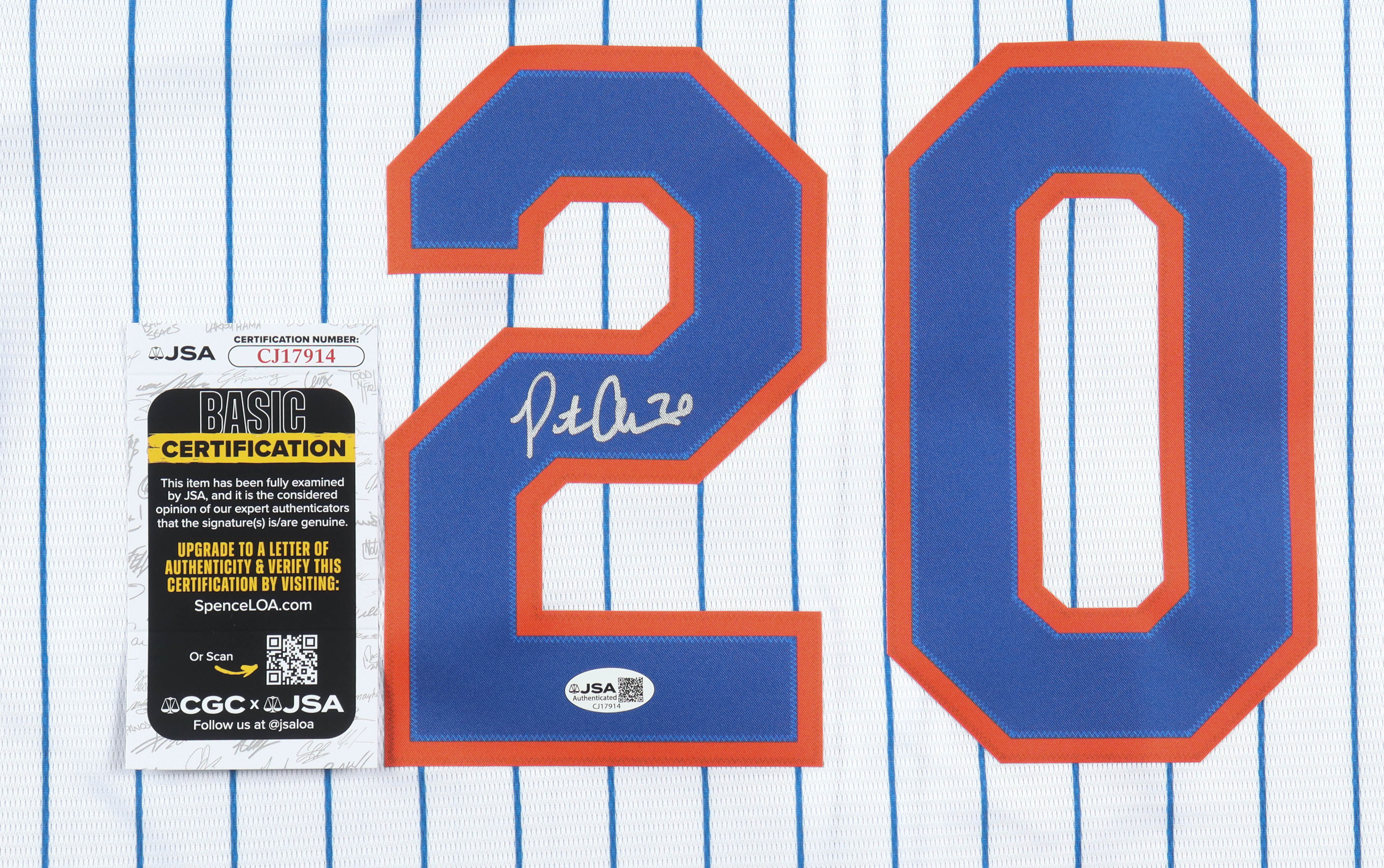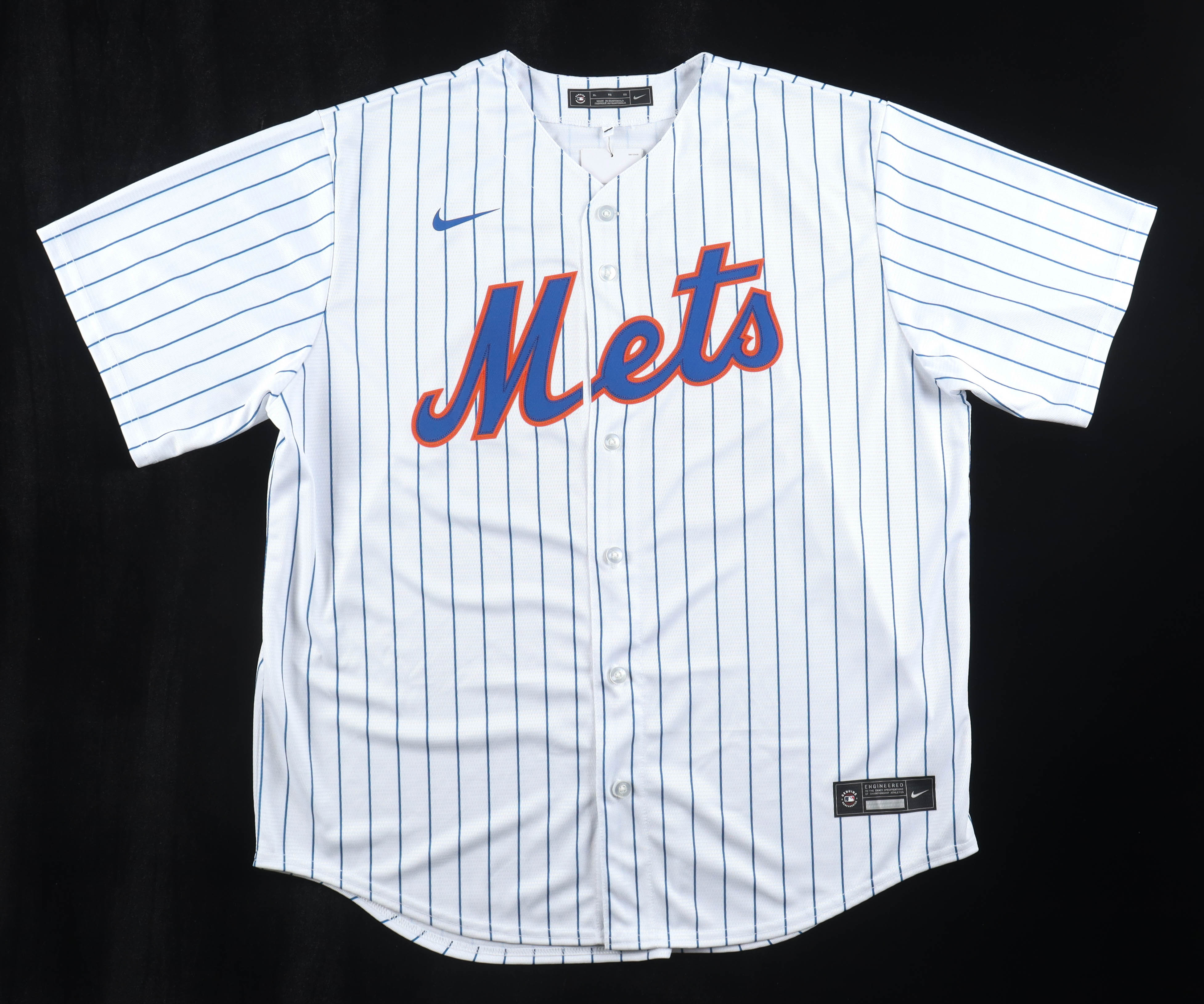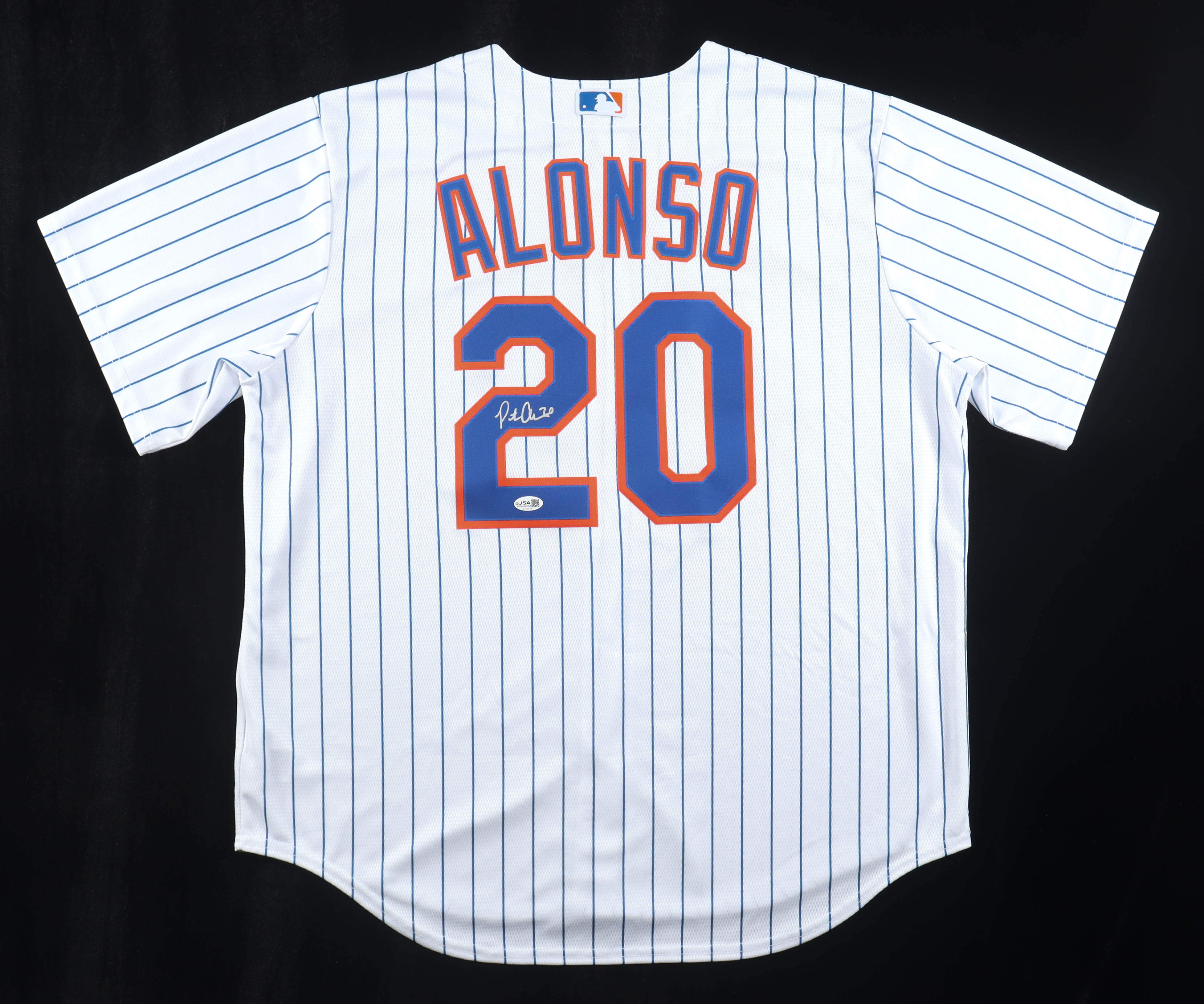 Nike jersey with everything pressed on, size XL. Hand-signed by Pete Alonso (New York Mets).