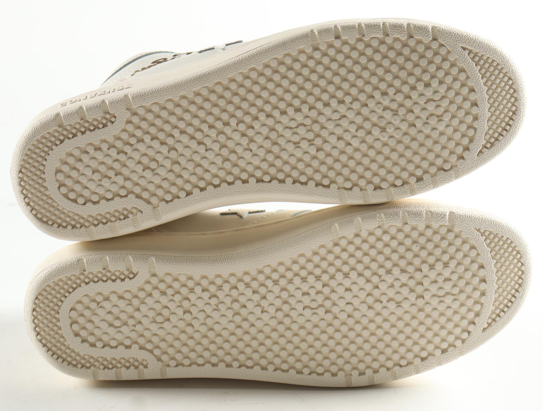 Pair of (2) Converse All Star Weapon White Leather Basketball Shoes,. Hand-signed by Magic Johnson (Los Angeles Lakers, HOF) and Larry Bird (Boston Celtics, HOF). The display case is included as shown.