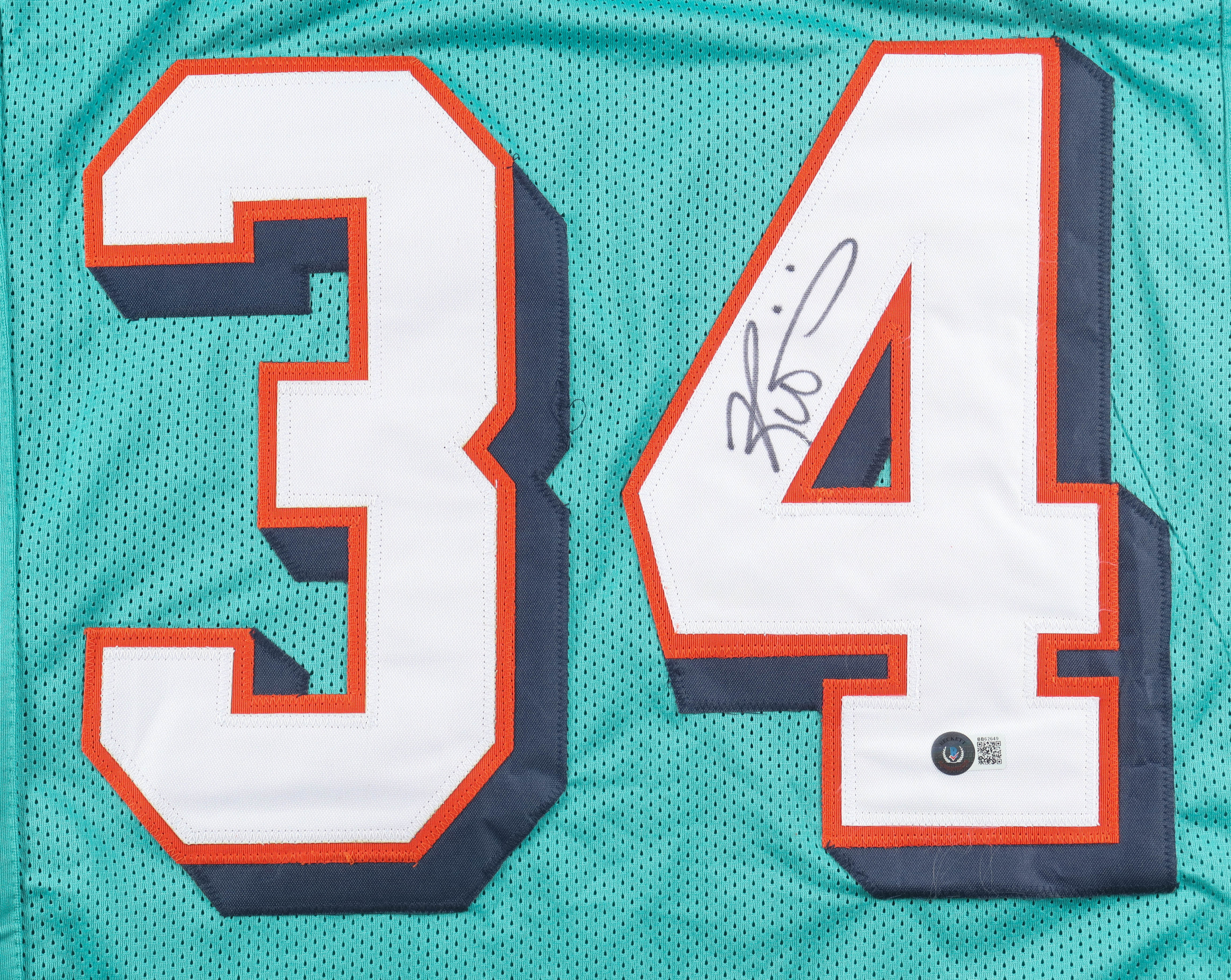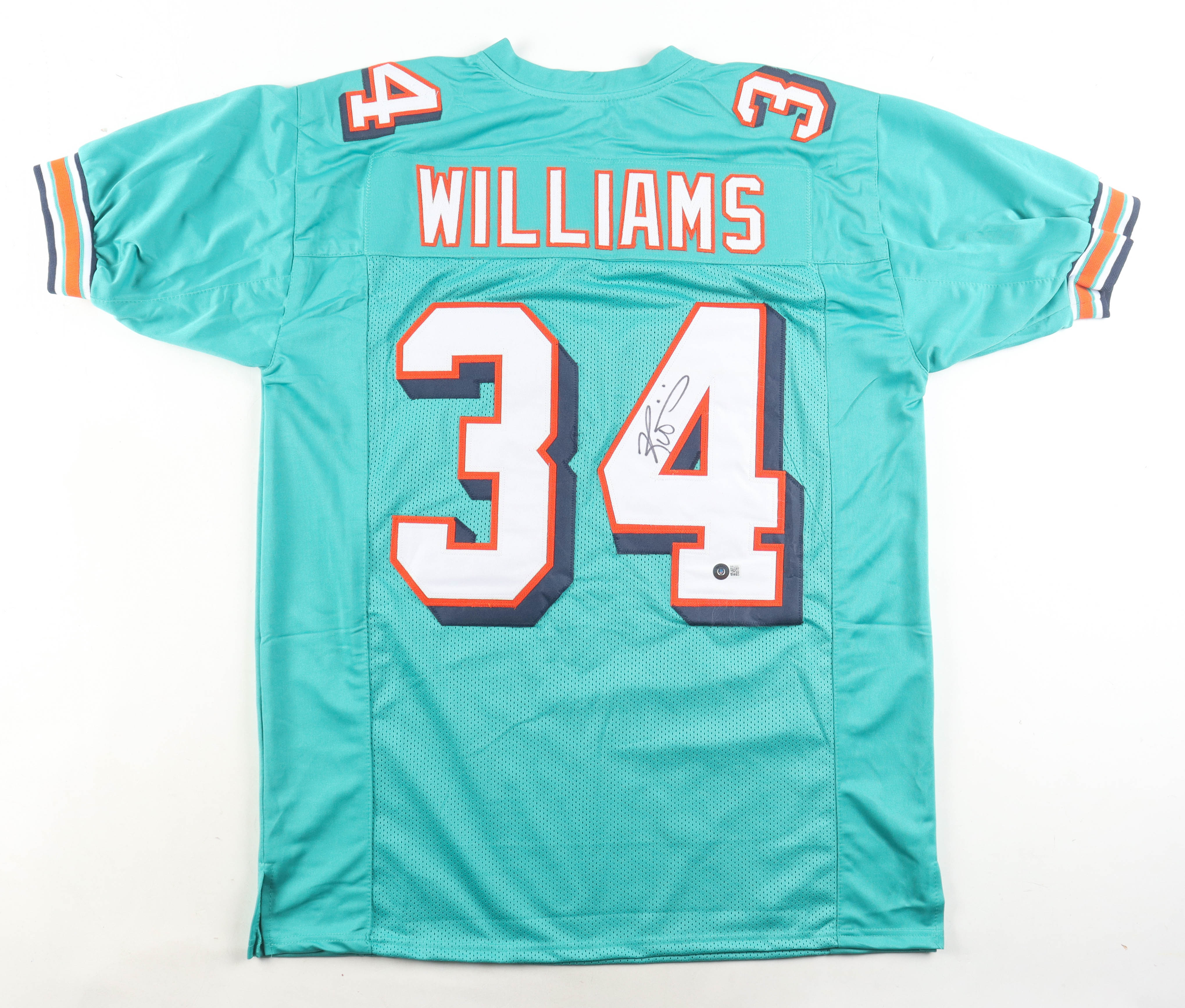 Custom jersey with everything sewn on, size XL. Hand-signed by Ricky Williams.