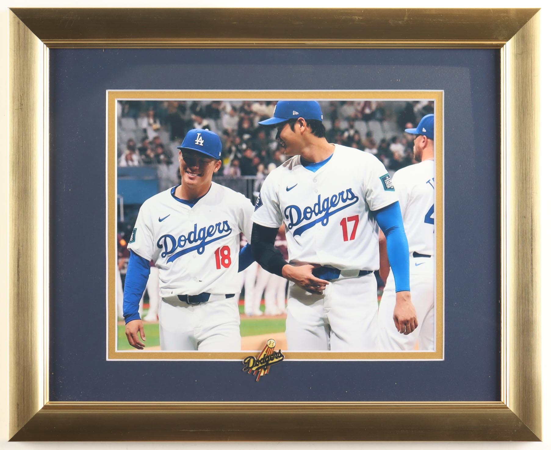 Shohei Ohtani & Yoshinobu Yamamoto Dodgers Custom Framed Photo Display With Dodgers Logo Pin