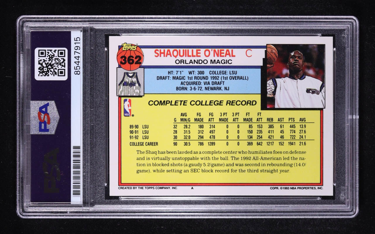 Shaquille O'Neal Signed 1992-93 Topps #362 RC (PSA | Auto Grade 10)