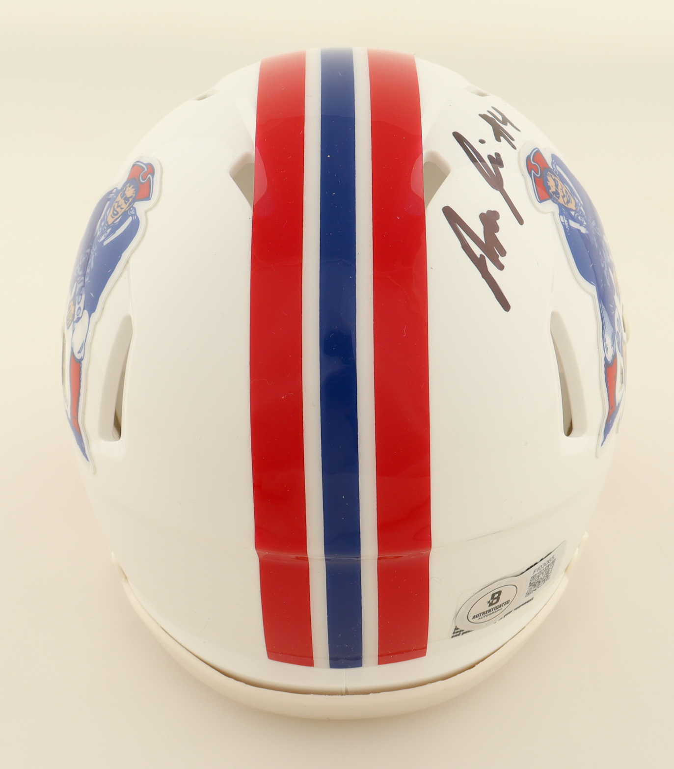 Riddell New England Patriots Throwback speed mini helmet. Hand-signed by Antonio Gibson.