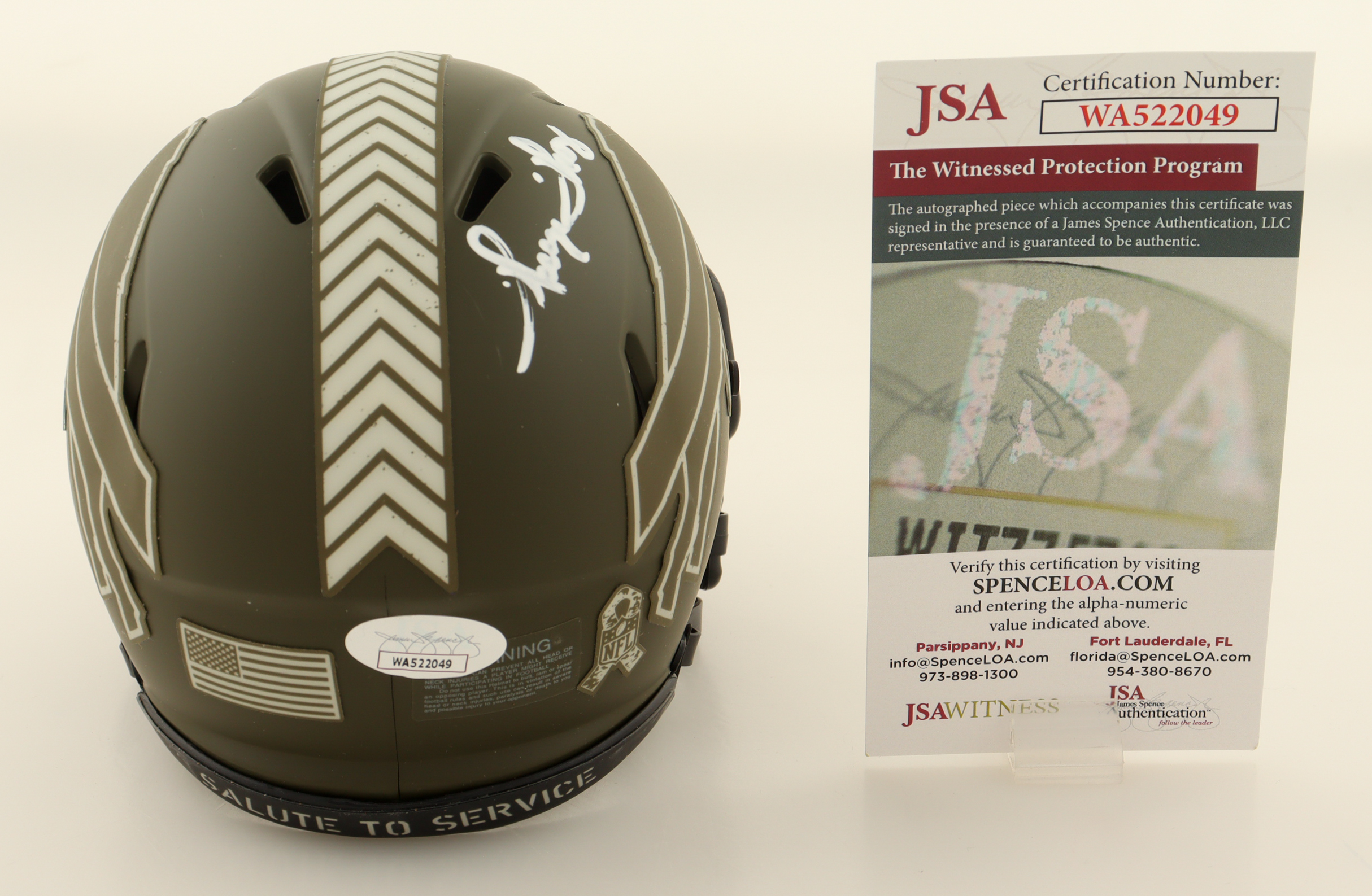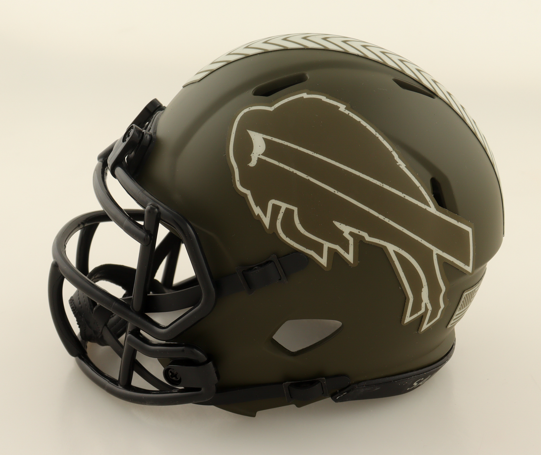 Riddell Buffalo Bills Salute To Service Alternate Speed mini helmet. Hand-signed by Thurman Thomas.