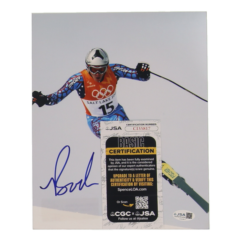 Photo measures 8" x 10" in size and has been hand-signed by Bode Miller.