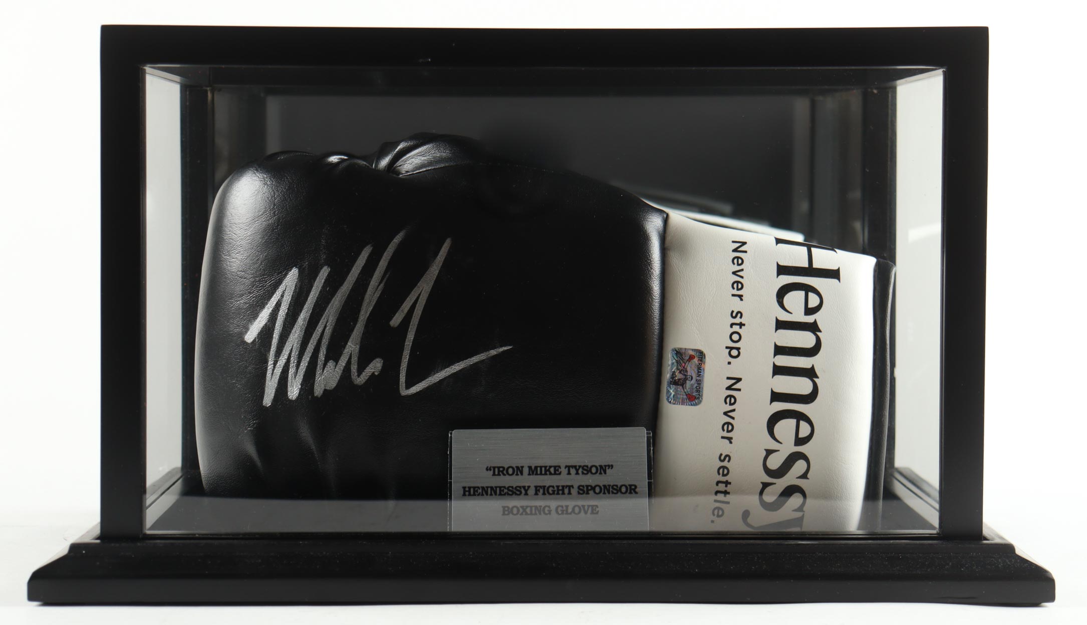 Hennessey boxing glove. Hand-signed by Mike Tyson (HOF). The display case is included as shown.