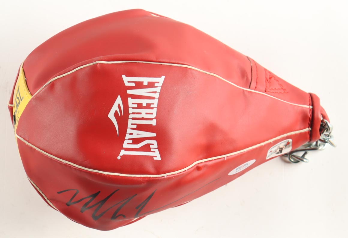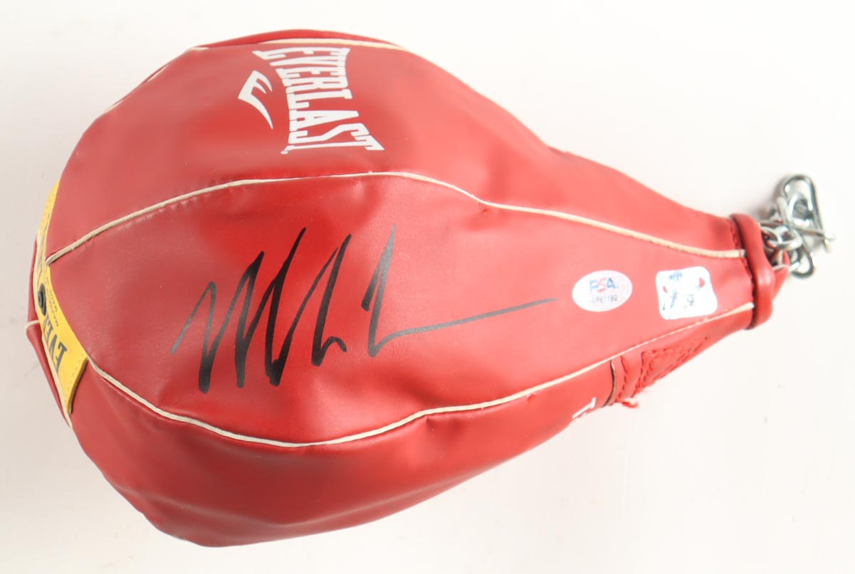 Everlast Gyro Speed Bag has been hand-signed by Mike Tyson (HOF). Please note that the display case is included in the listing as shown above.
