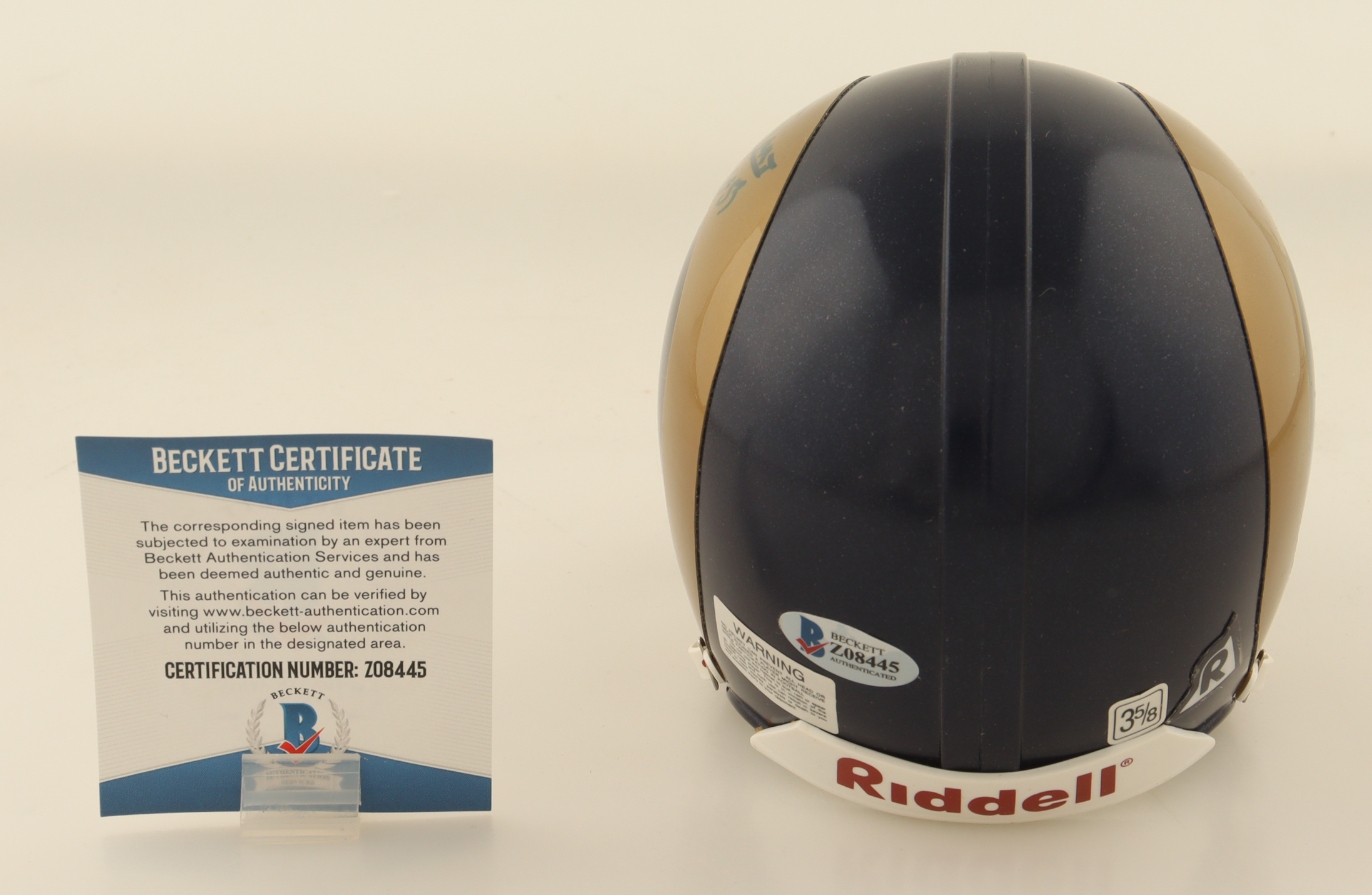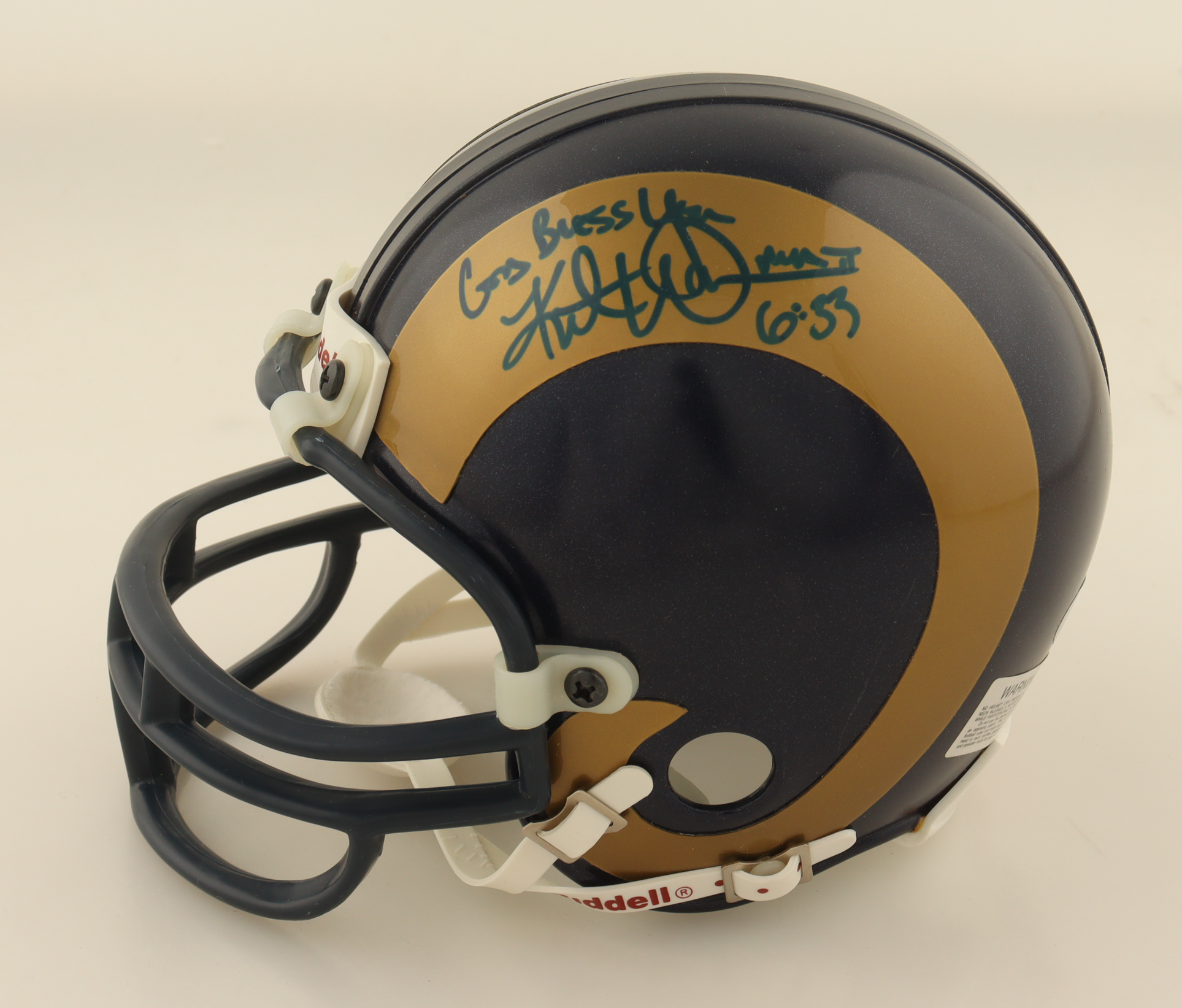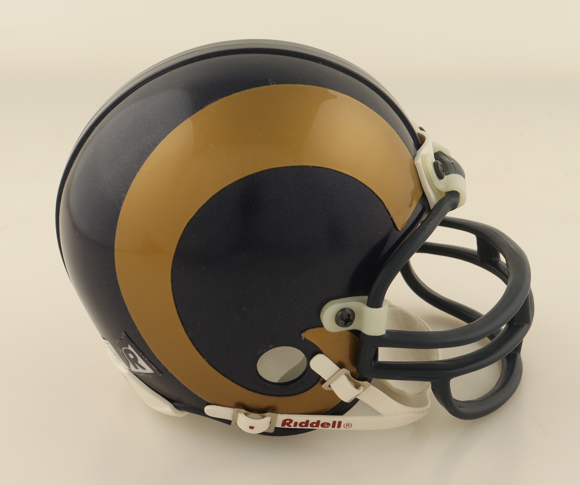 Riddell St. Louis Rams Speed mini helmet hand signed and inscribed by Kurt Warner. (HOF)