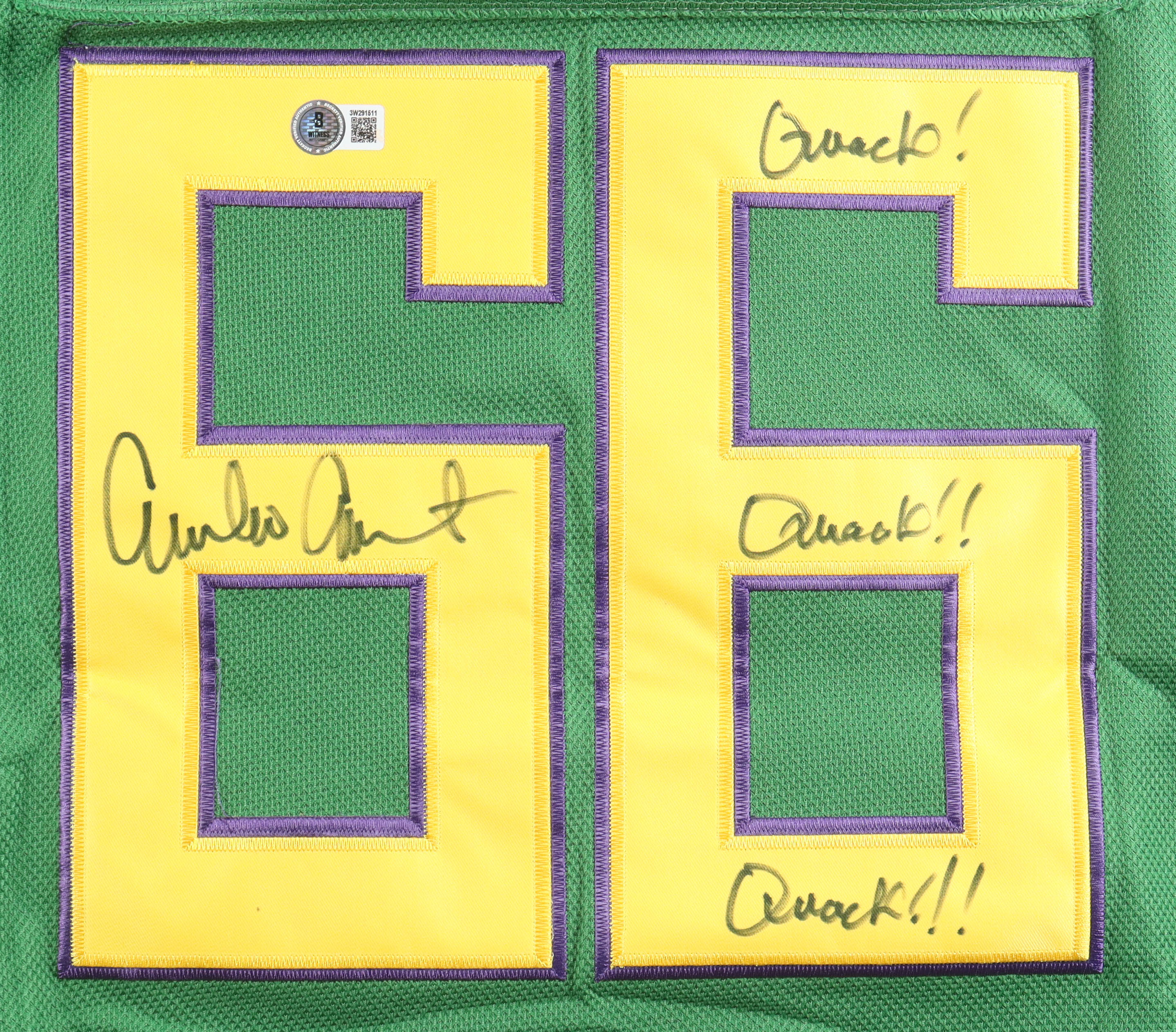 Emilio Estevez Signed "The Mighty Ducks" Jersey Inscribed "Quack! Quack!! Quack!!!" (Beckett)