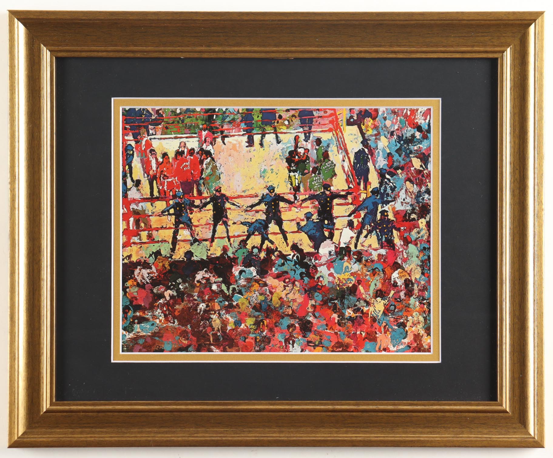 Custom frame measures approximately 13" x 16" in size and features a print from LeRoy Neiman (D. 2012). Please note, the display is unsigned.