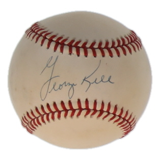 Rawlings Official American League Baseball. Hand-signed by George Kell (D. 2009, Detroit Tigers, HOF). Please note, the baseball is naturally toning and stained.