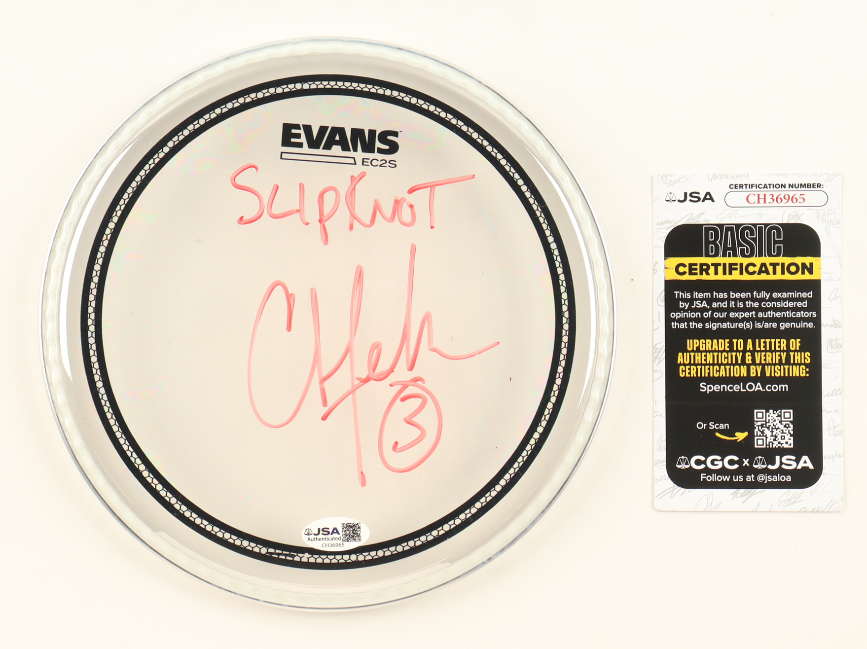 Evans Drum Head measures approximately 10" in diameter and has been hand-signed and inscribed by Chris Fehn.