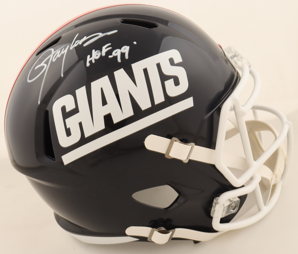 Riddell New York Giants full-size replica Speed helmet. Hand-signed and inscribed by Lawrence Taylor (HOF).