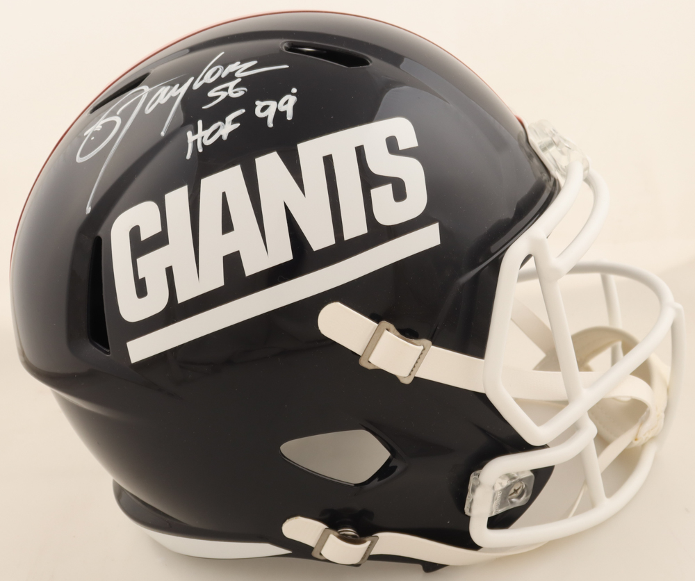 Riddell New York Giants full-size replica Speed helmet. Hand-signed and inscribed by Lawrence Taylor (HOF).