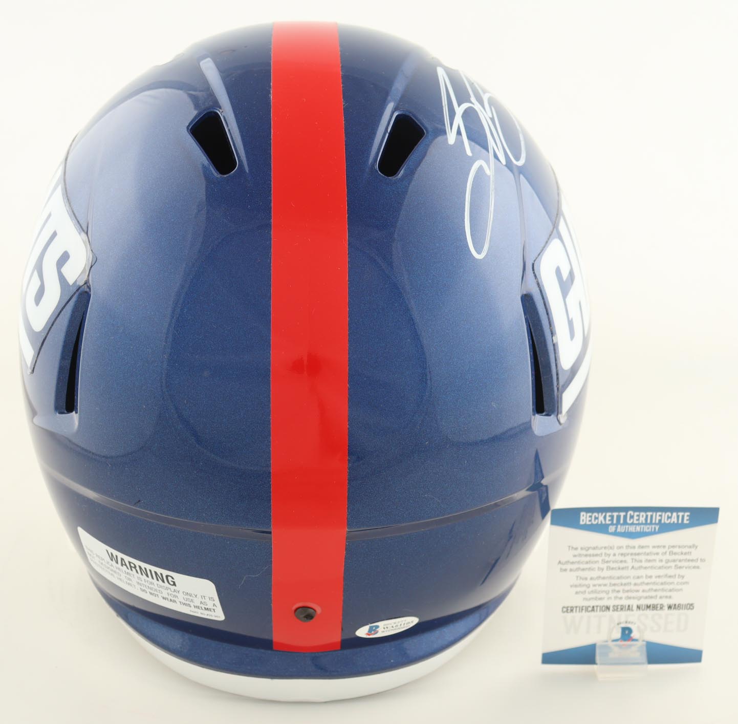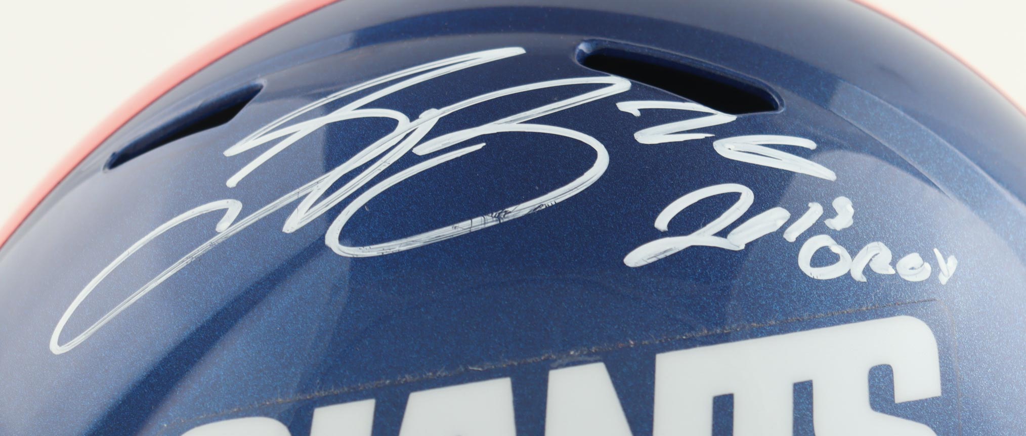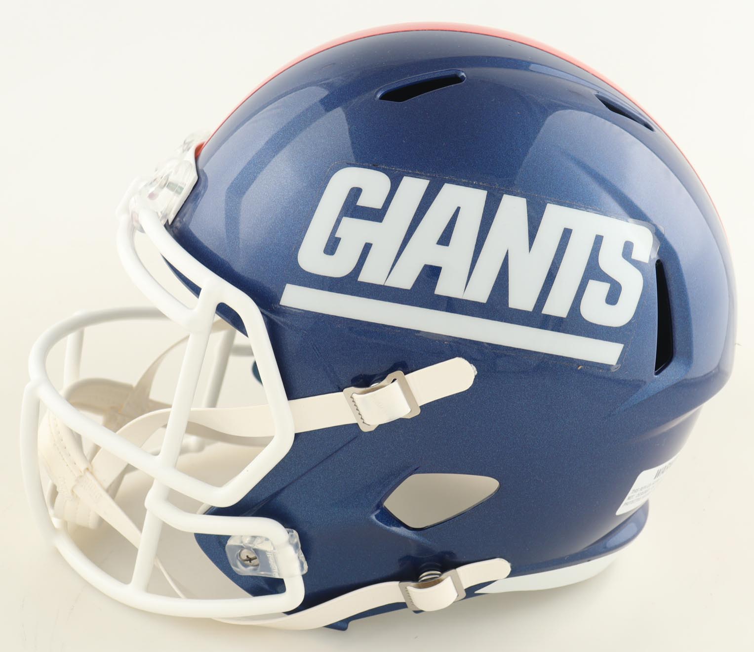Riddell New York Giants full-size replica Speed helmet. Hand-signed and inscribed by Saquon Barkley. Please note, there is some scuffing on the signature.