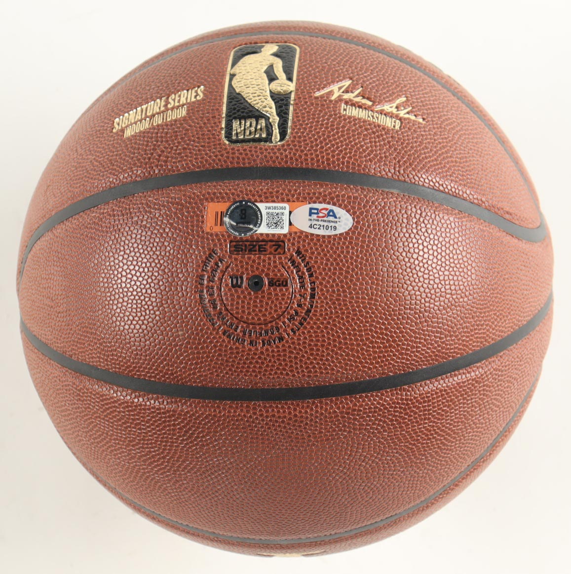 Magic Johnson & Larry Bird Signed NBA Finals Trophy Special Edition Basketball with Stand (PSA & Beckett)