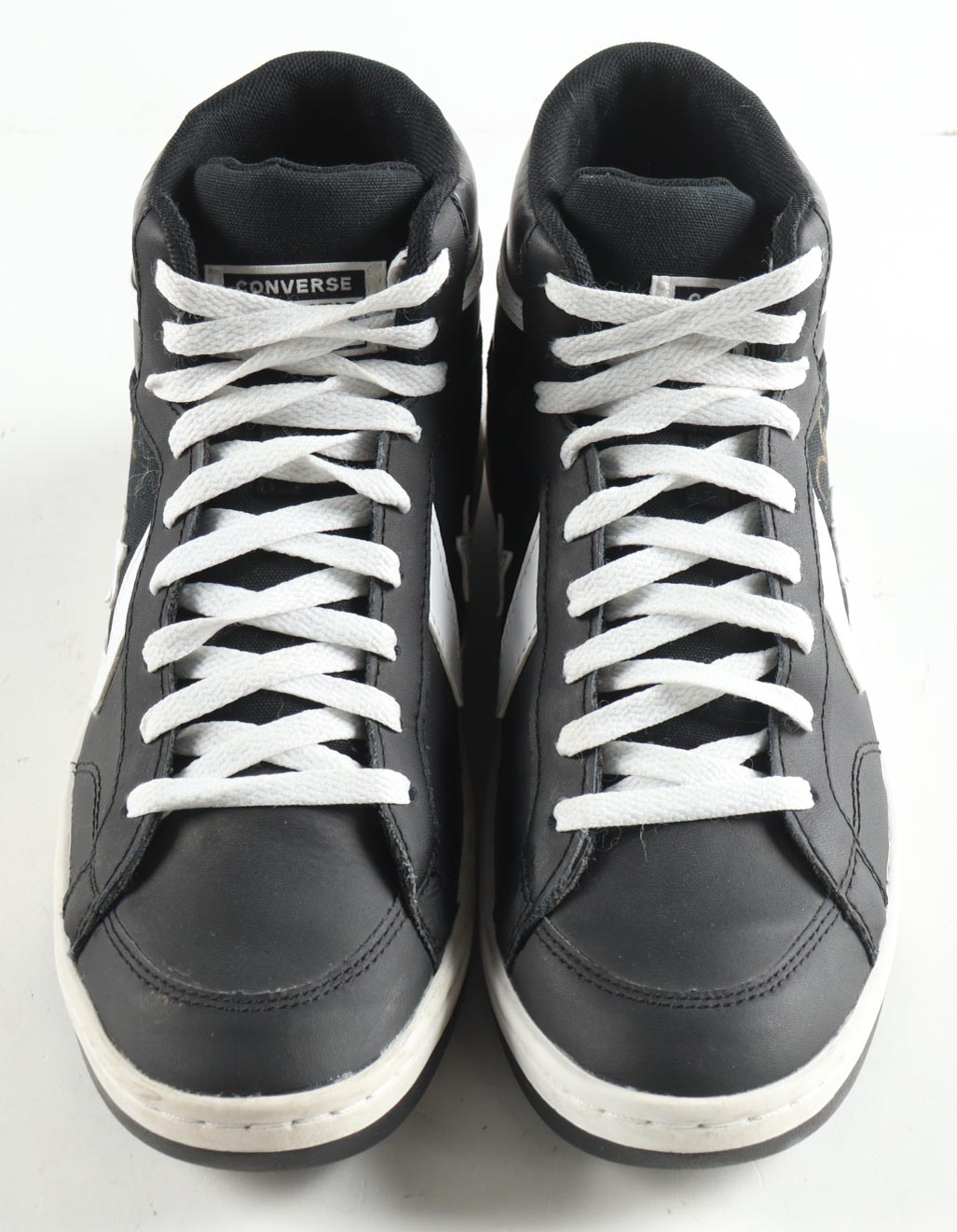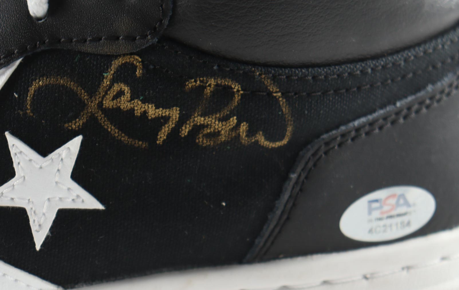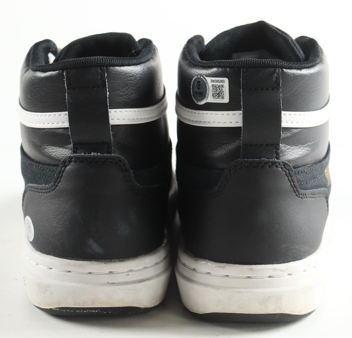 Converse Black Leather Shoes, has been hand-signed by Magic Johnson (Los Angeles Lakers, HOF) and Larry Bird (Boston Celtics, HOF). Display case is included as shown.