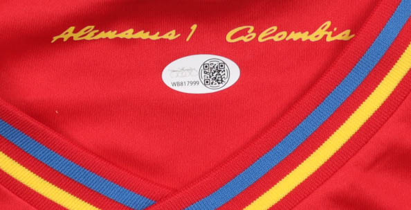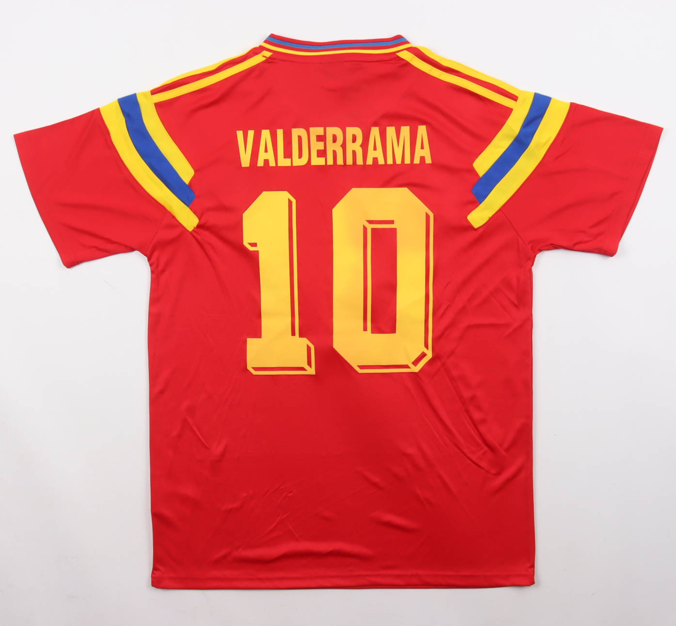 Adidas jersey with everything printed/sewn on, size L. Hand-signed by Carlos Valderrama (Colombia National Football Team).