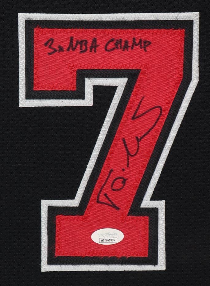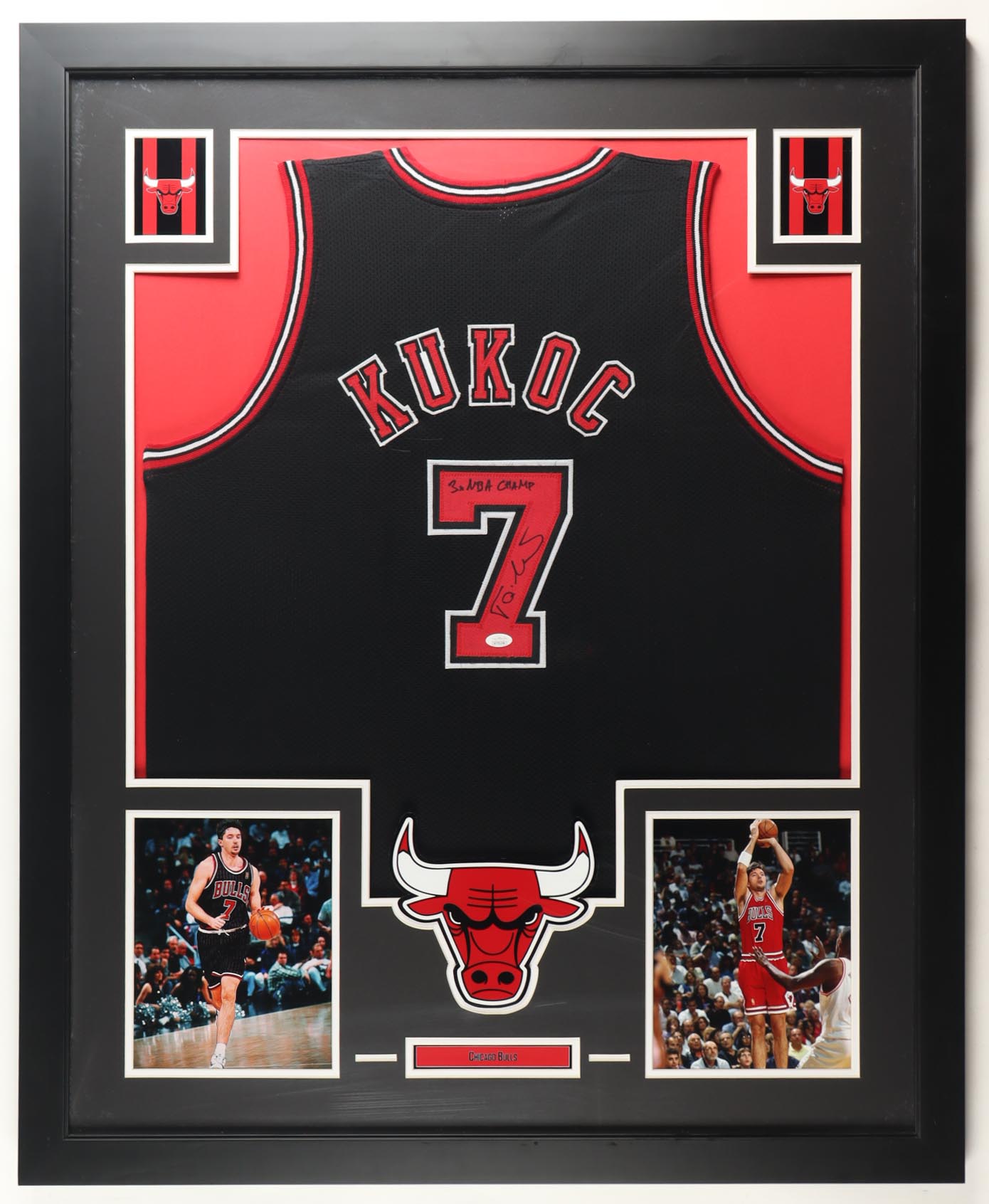 Toni Kukoc Signed Bulls Custom Framed Jersey Display Inscribed "3x NBA Champ" (JSA)