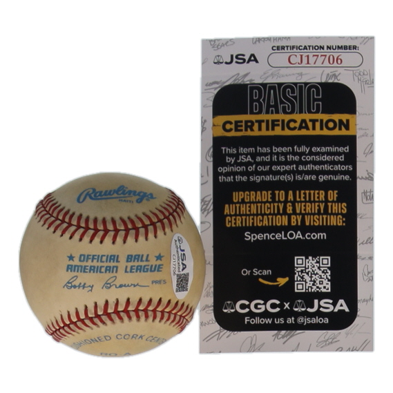 Rawlings Official American League Baseball. Hand-signed by Al Kaline (D. 2020, Detroit Tigers, HOF). Please note, the baseball is naturally toned.