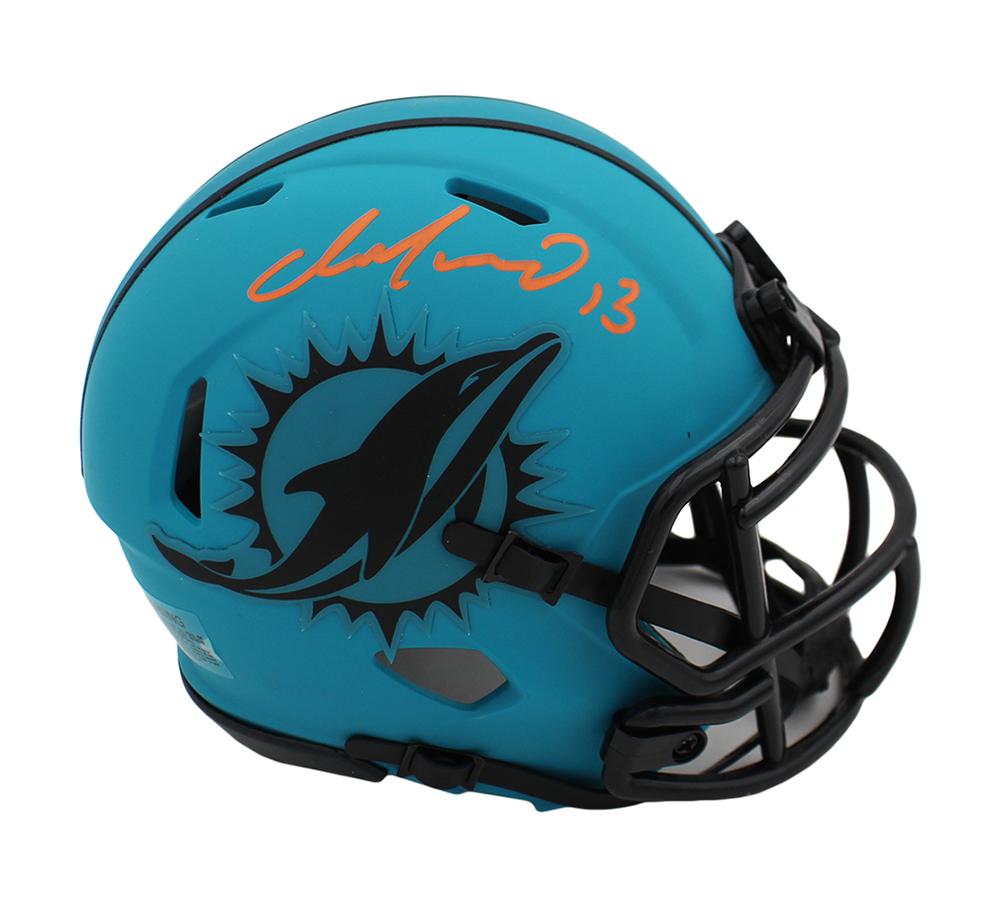 Riddell Miami Dolphins rave alternate speed mini helmet. Hand-signed by Dan Marino (HOF).
