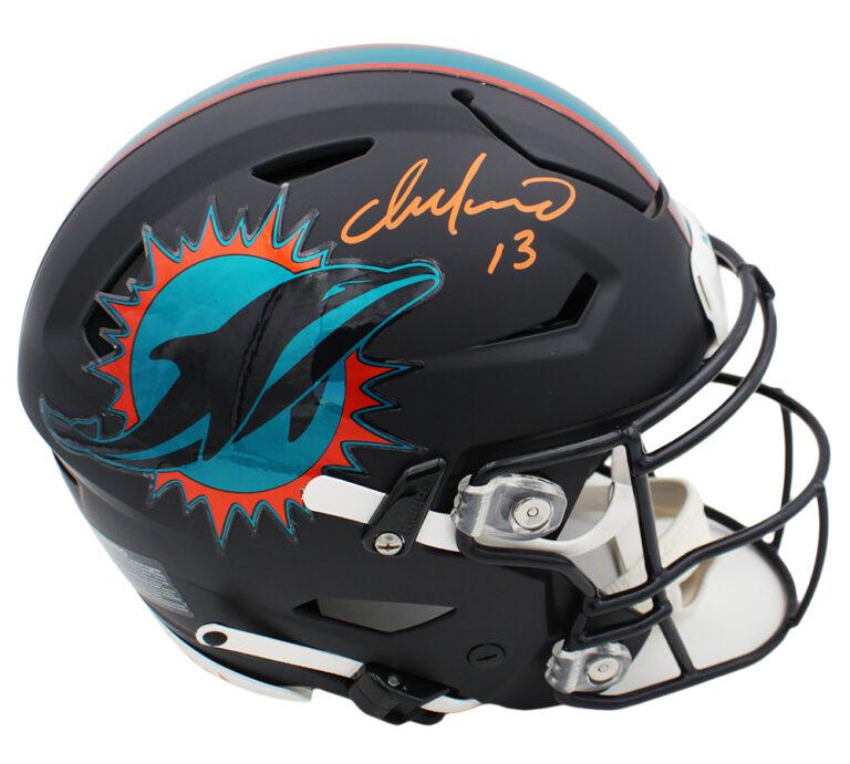Riddell Miami Dolphins full-size authentic on-field rivalries alternate speedflex helmet has been hand-signed by Dan Marino (HOF).