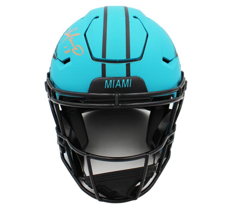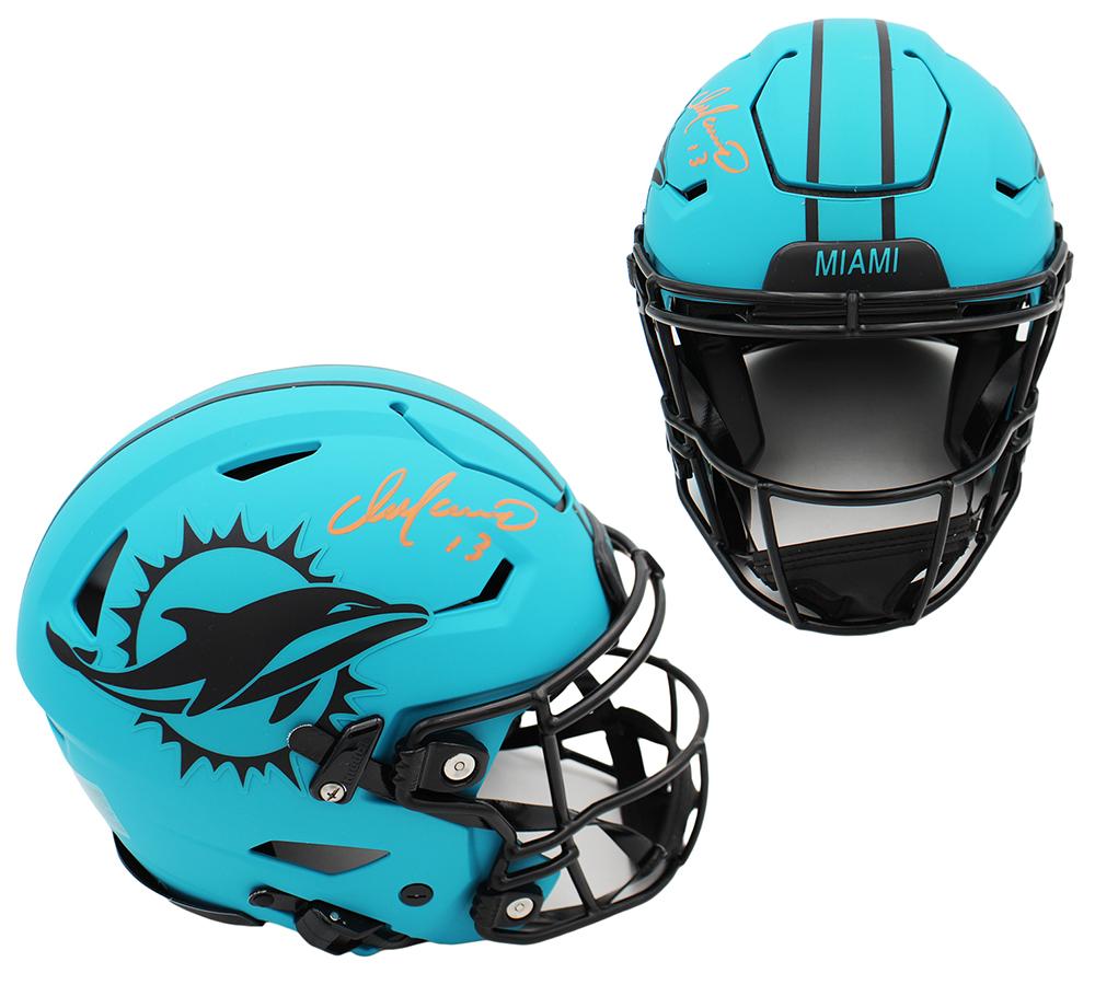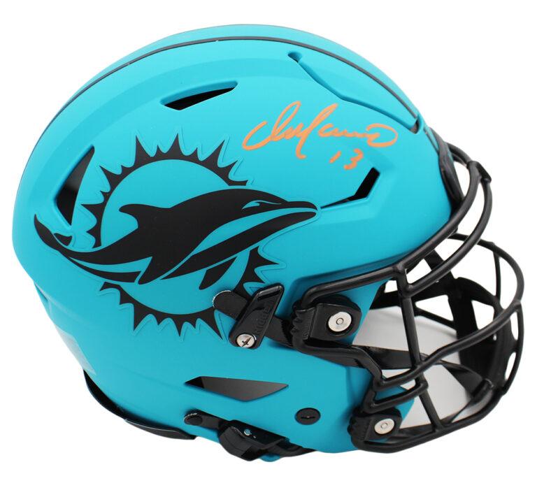 Riddell Miami Dolphins full-size authentic on-field rave alternate speedflex helmet has been hand-signed by Dan Marino (HOF).