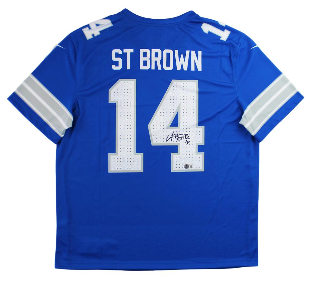 Nike style jersey with everything pressed on, size XL. Hand-signed by Amon-Ra St. Brown (Detroit Lions).