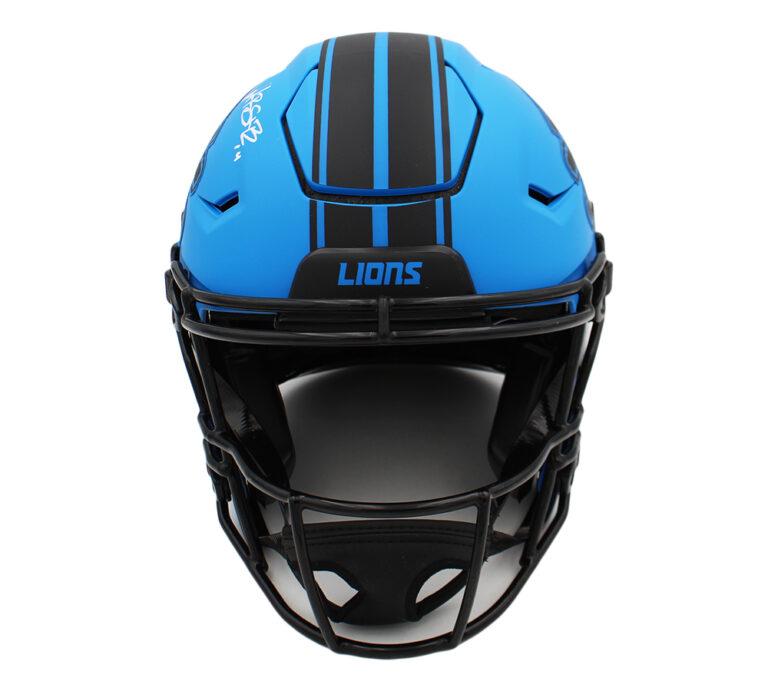Riddell Detroit Lions full-size authentic on-field rave alternate speedflex helmet has been hand-signed by Amon-Ra St. Brown.