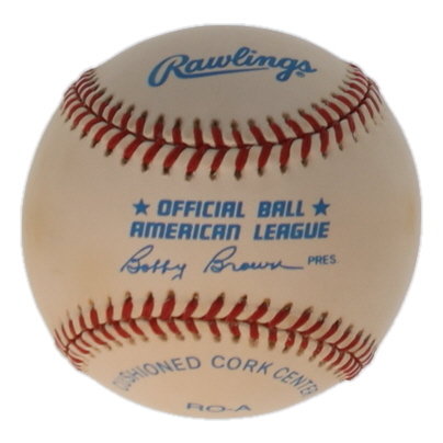 Rawlings Official American League Baseball. Hand-signed by Ted Williams (D. 2002, Boston Red Sox, HOF). Please note, the baseball is naturally toning and stained.