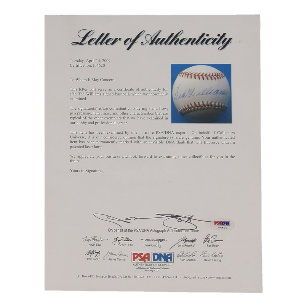 Ted Williams Signed OAL Baseball (PSA)