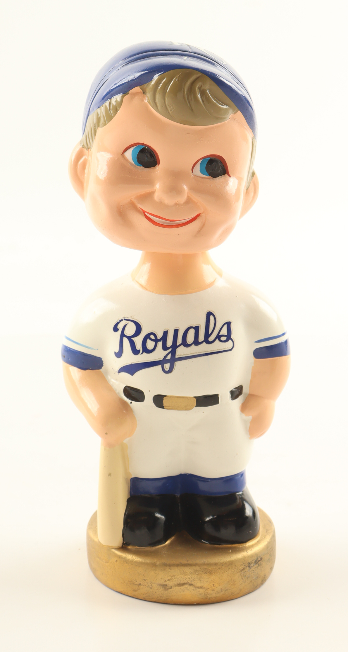 Vintage Kansas City Royals bobble head. The bobblehead measures approximately 8" tall. Please note, the bobblehead is unsigned.