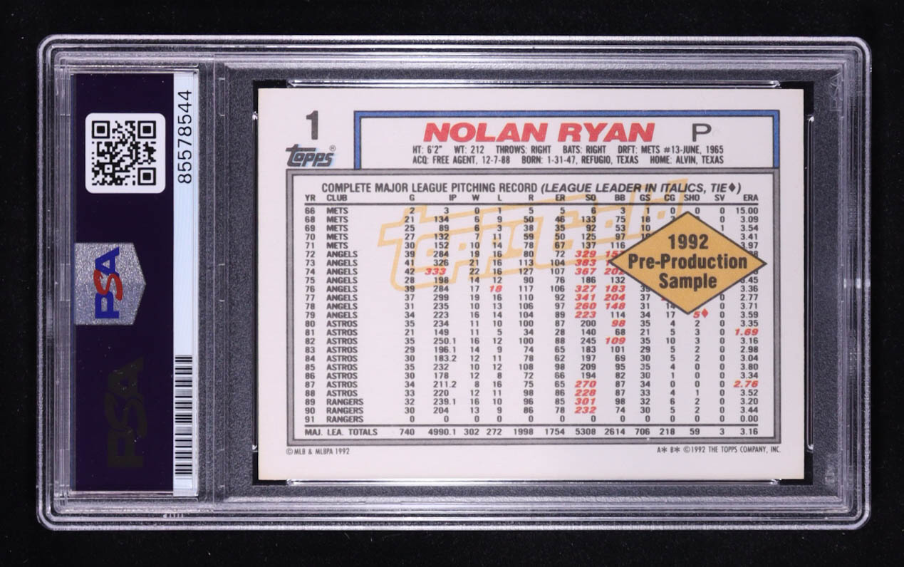 Nolan Ryan Signed 1992 Topps Gold Inscribed "108.5 MPH Fastball" #1 (PSA | Autograph Graded PSA 10)
