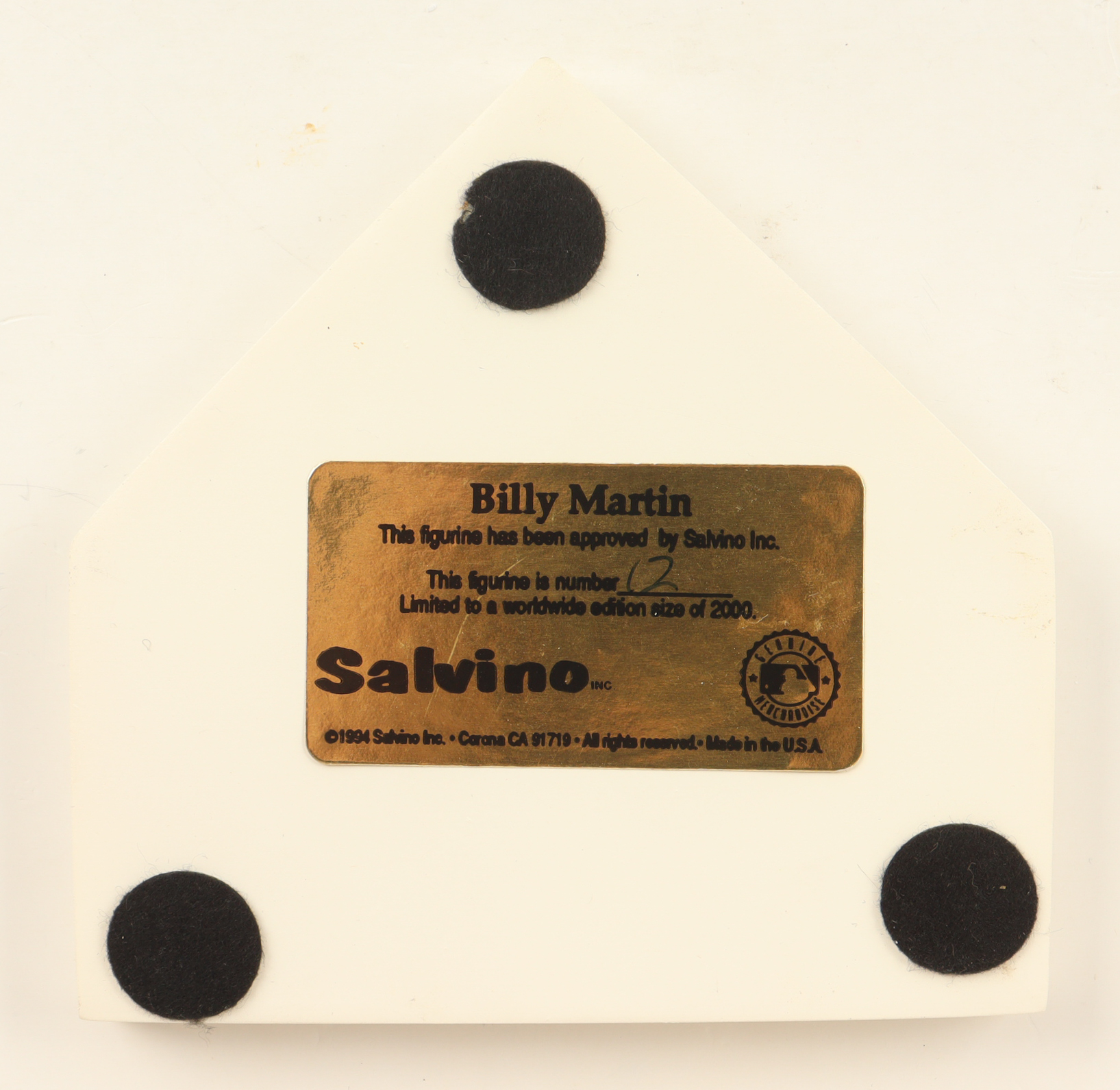 Figurine measures approximately 7" in height and features Billy Martin (D. 1989, New York Yankees) The figure is limited edition numbered #12 / 2000. Please note, the arm of the figure is broken (but included) and the visible signature is a facsimile.