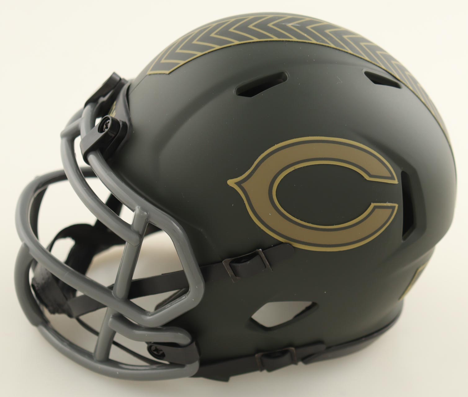 Riddell Chicago Bears Salute To Service Alternate speed mini helmet has been hand-signed by Kyle Monangai.