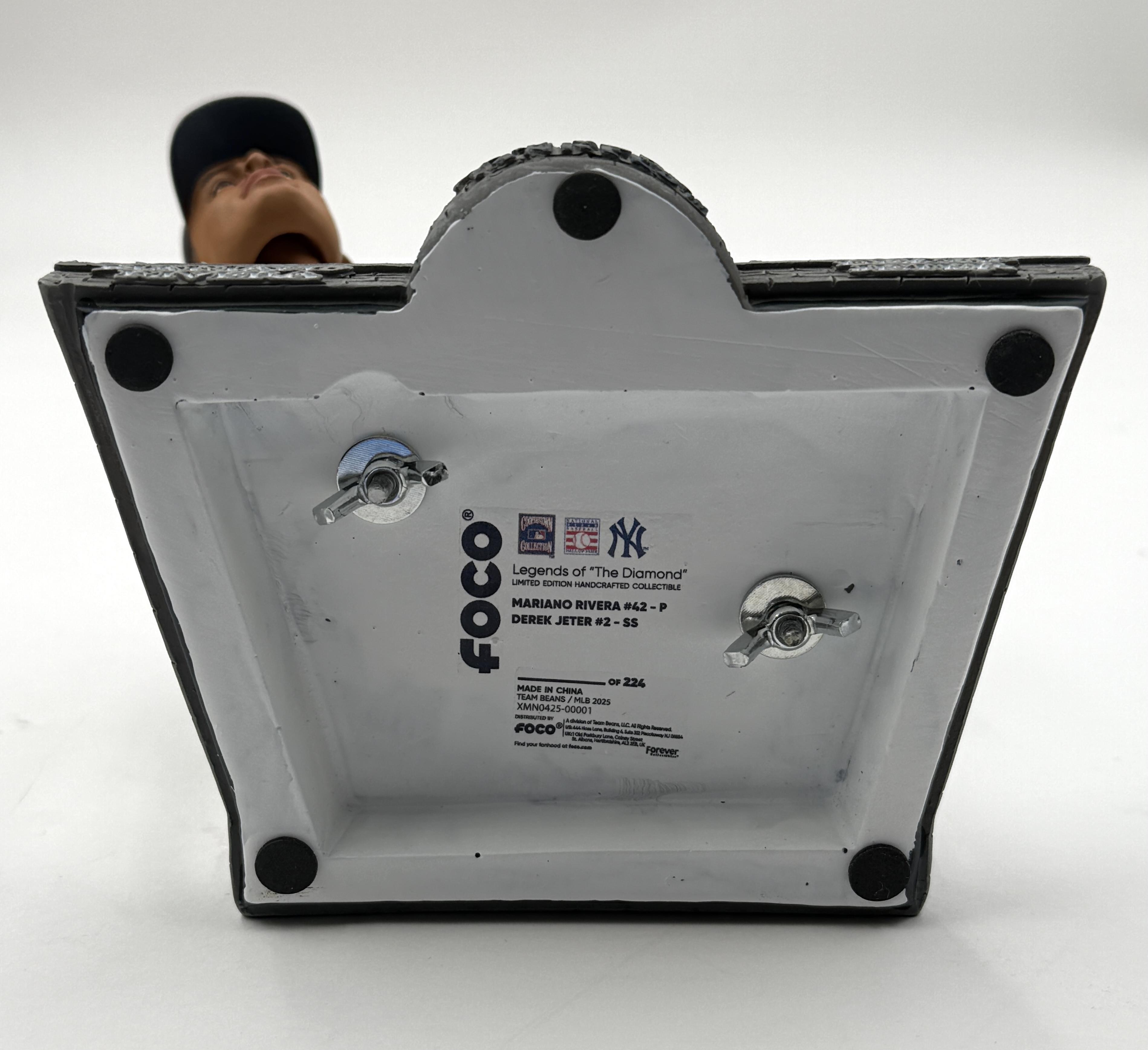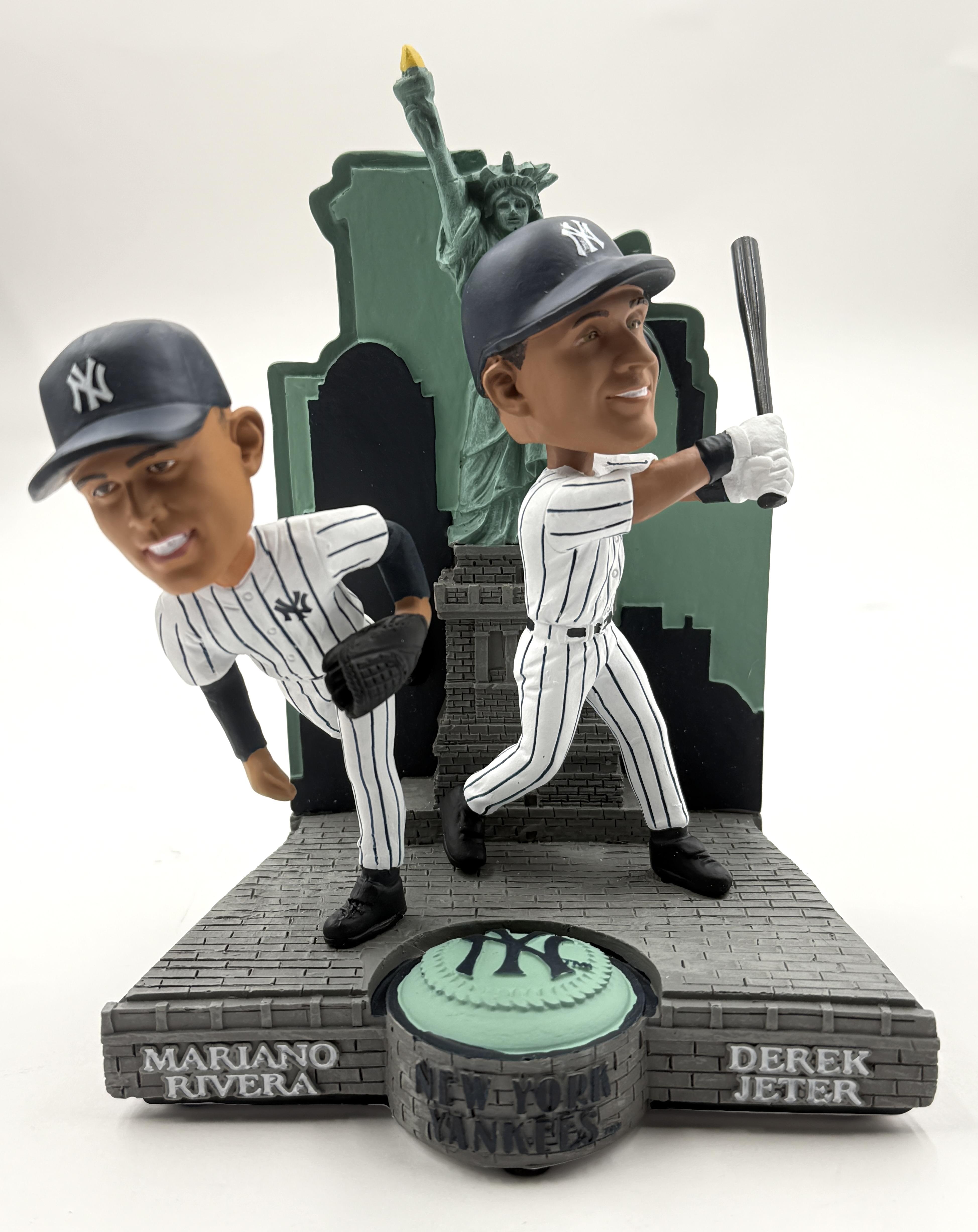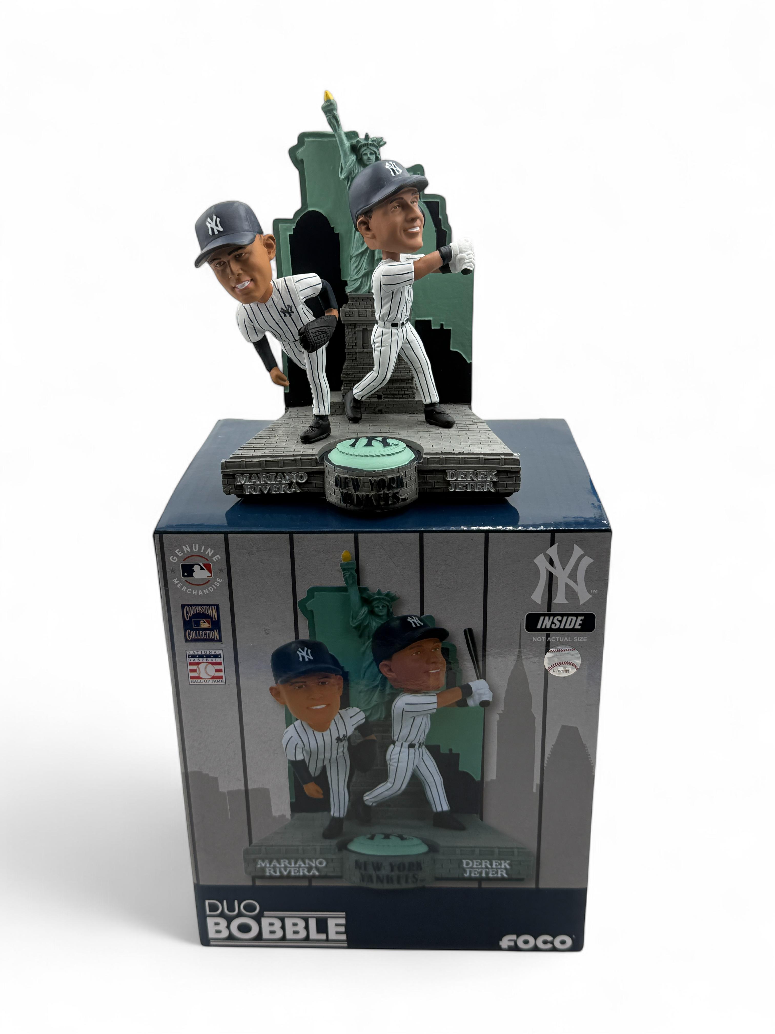 New York Yankees stadium exclusive bobblehead featuring Derek Jeter and Mariano Rivera! This bobblehead measures 7" x 5" x 5" in size and is from the Yankee team store in Yankee stadium.