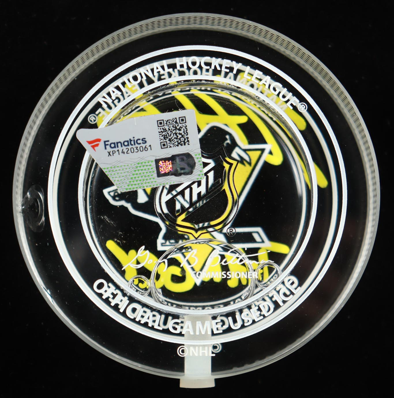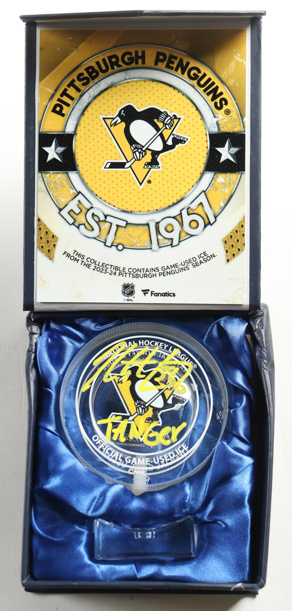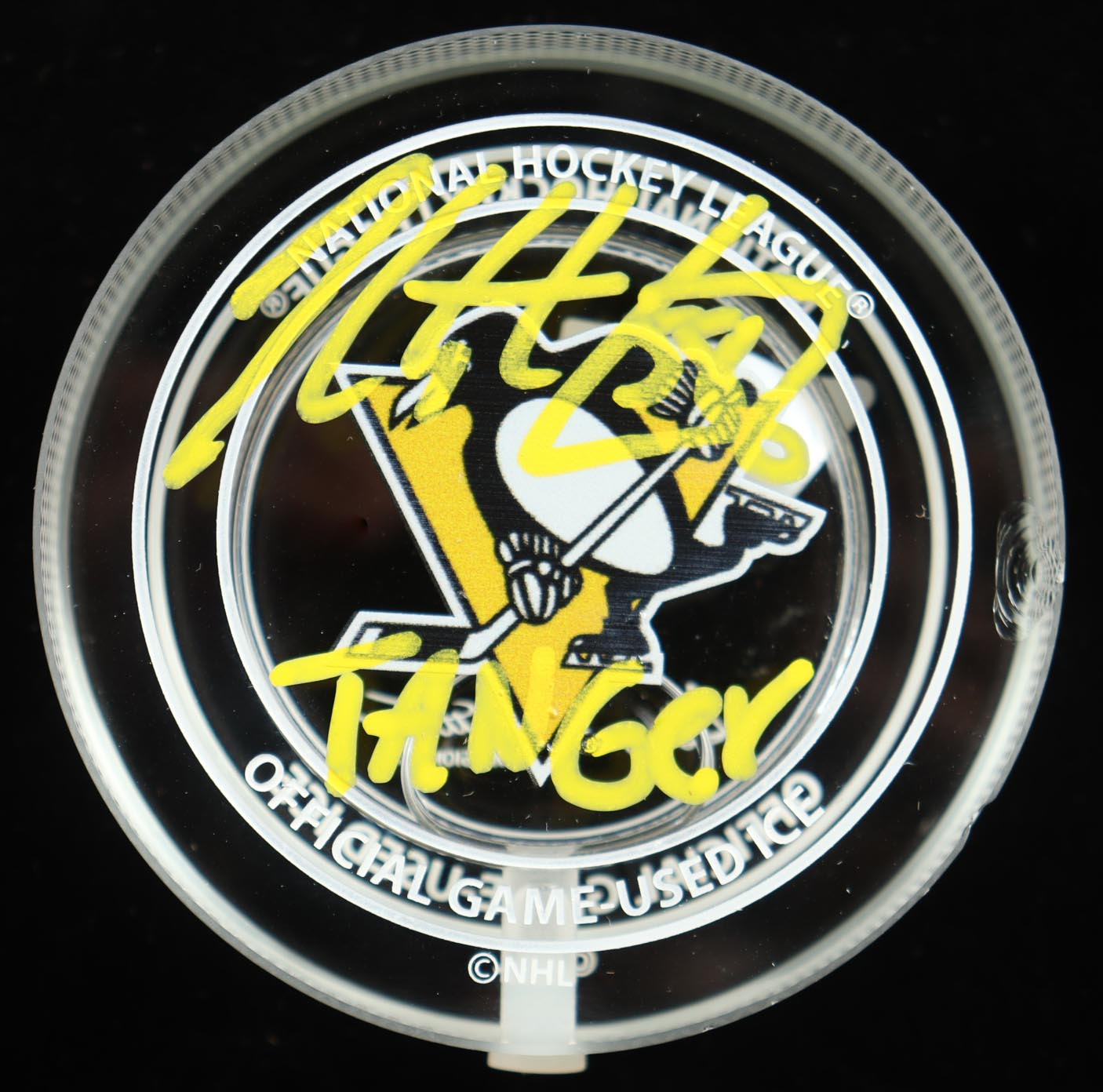 Kris Letang Signed Penguins Crystal Hockey Puck Filled with Game-Used 2022-23 Season Ice Inscribed "Tanger" (Fanatics)