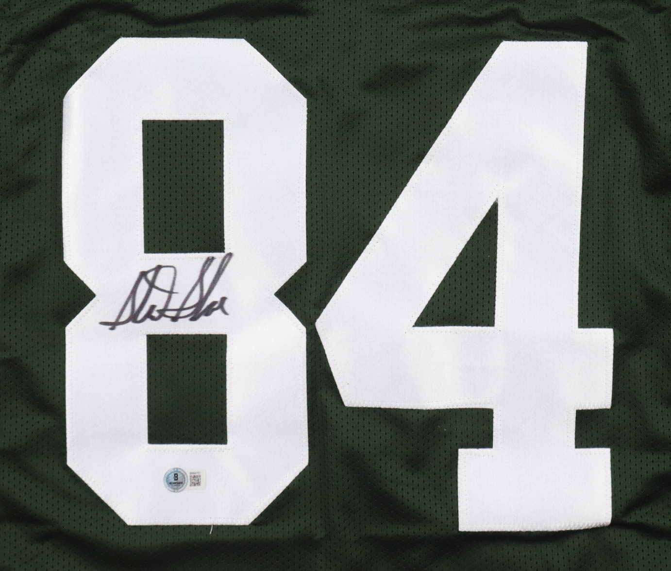 Custom jersey with everything sewn on, size XL. Hand-signed by Sterling Sharpe.