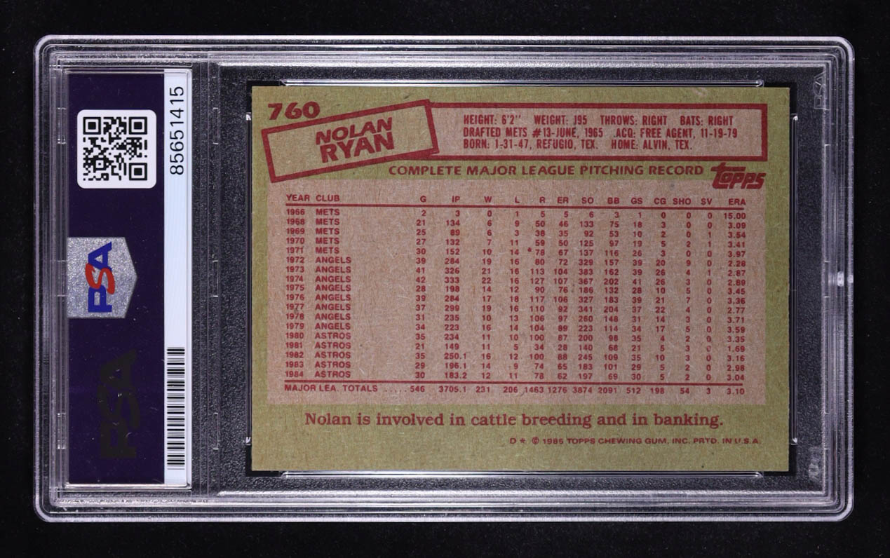 Nolan Ryan Signed 1985 Topps #760 (PSA | Autograph Graded PSA 10)