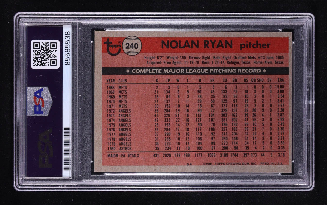Nolan Ryan Signed 1981 Topps Inscribed "The Ryan Express" #240 (PSA | Autograph Graded PSA 10)