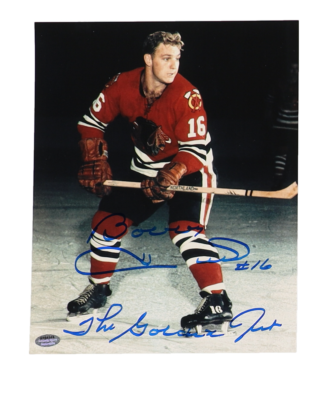 Bobby Hull Signed Blackhawks 8x10 Photo Inscribed "The Golden Jet" (Schwartz)