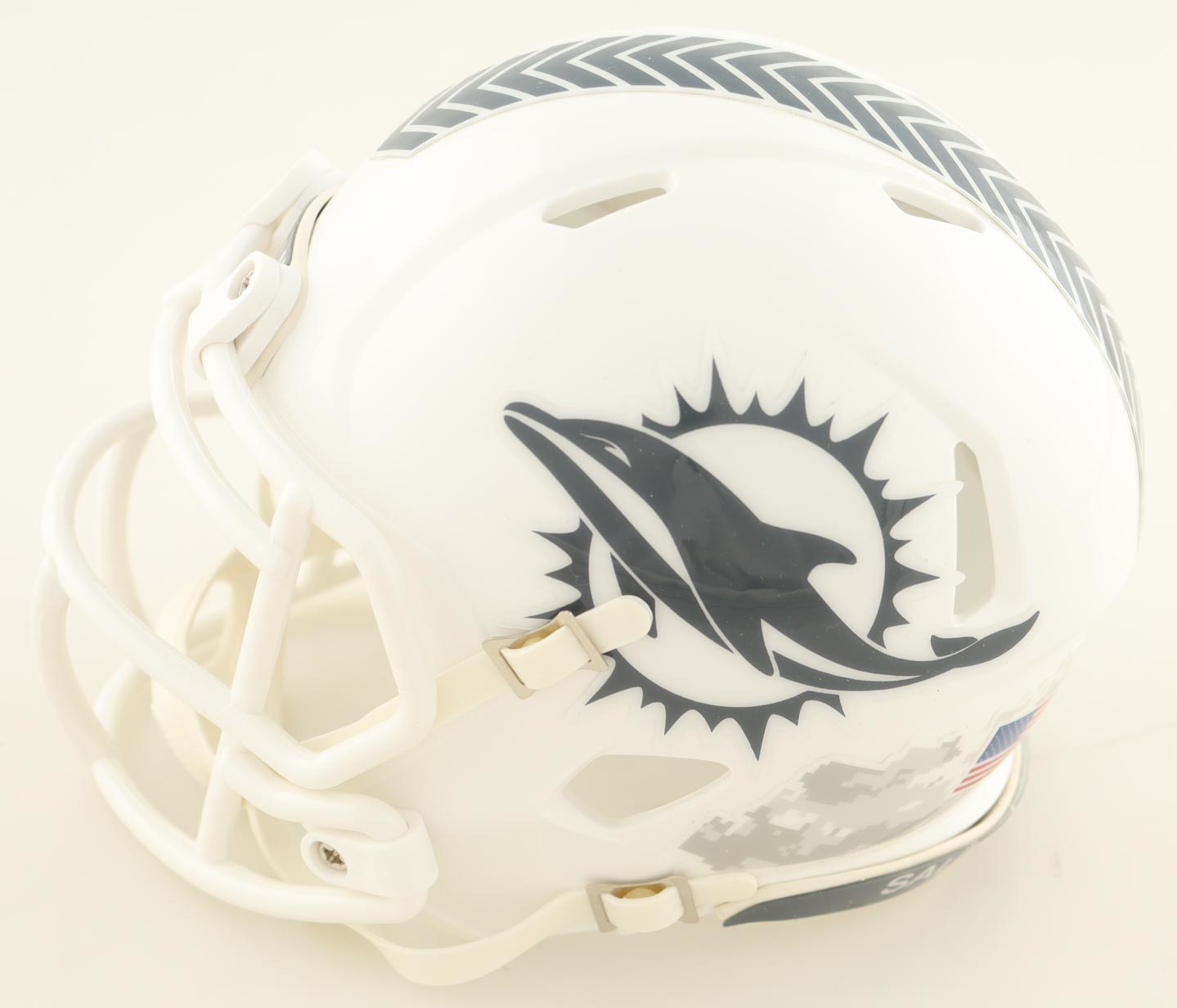 Riddell Miami Dolphins Salute to Service alternate speed mini helmet has been hand-signed by Tua Tagovailoa.