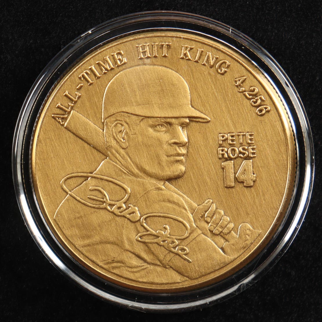 Limited edition #2,338/4,192 Pete Rose solid bronze coin includes case.