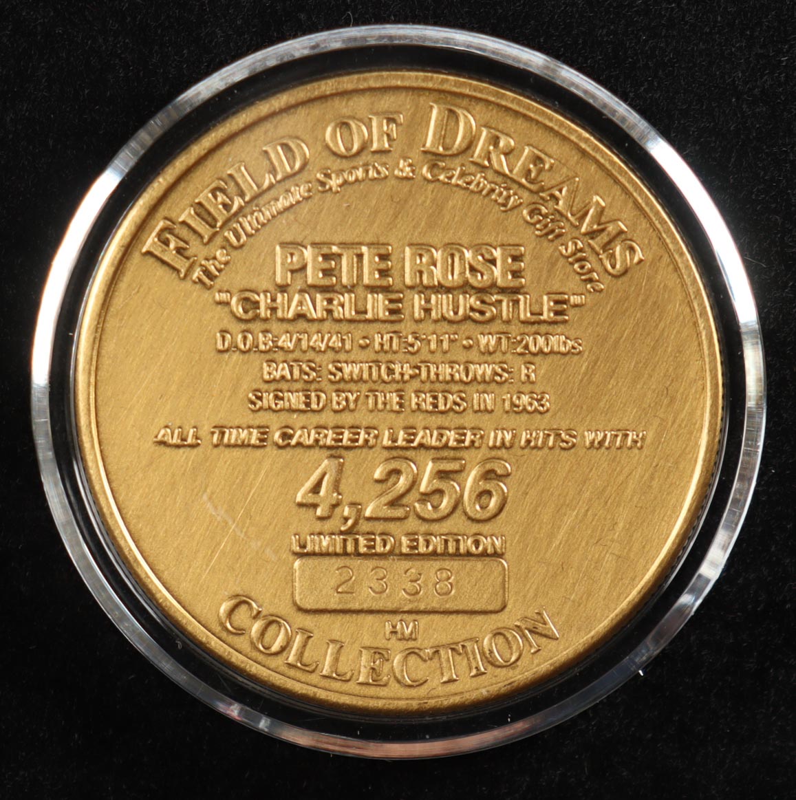 Pete Rose LE Reds 4256 Solid Bronze Coin with Case (Field Of Dreams)