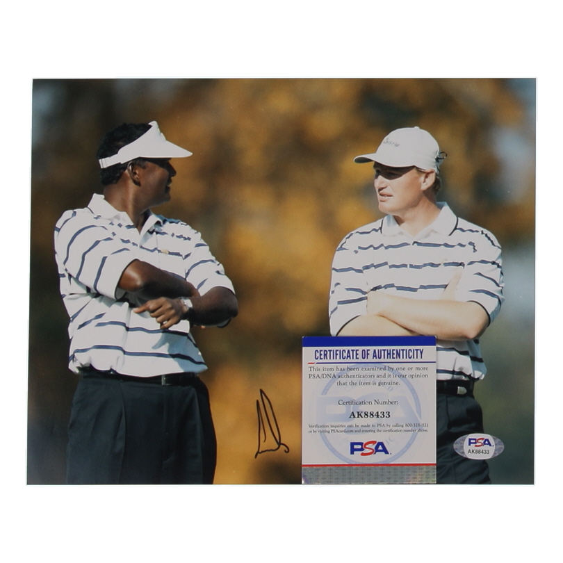 Photo measures 8" x 10" in size and has been hand-signed by Ernie Els.